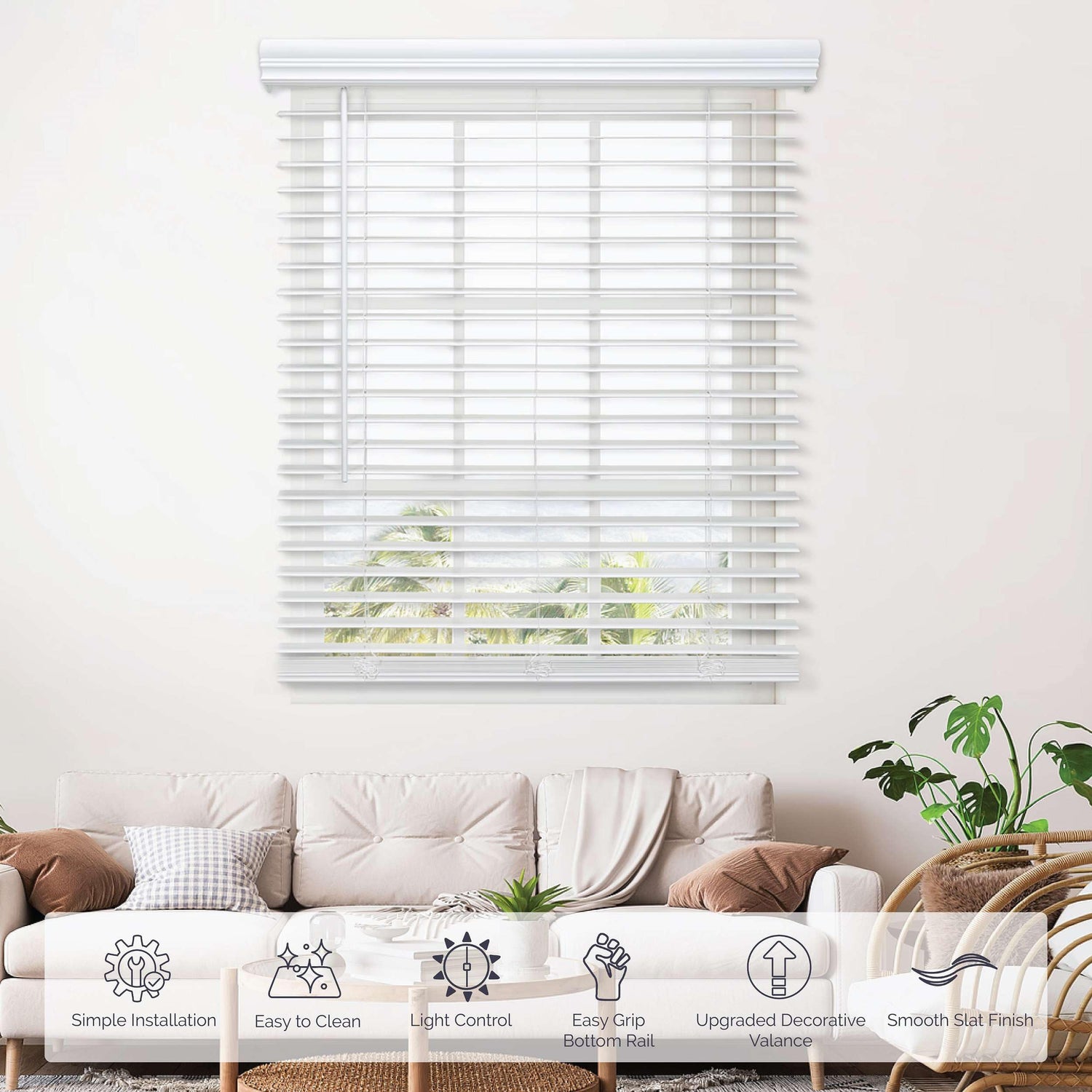 Linen AVENUE Cordless Faux Wood Blind White 25 W x 36 H, Outside Mount