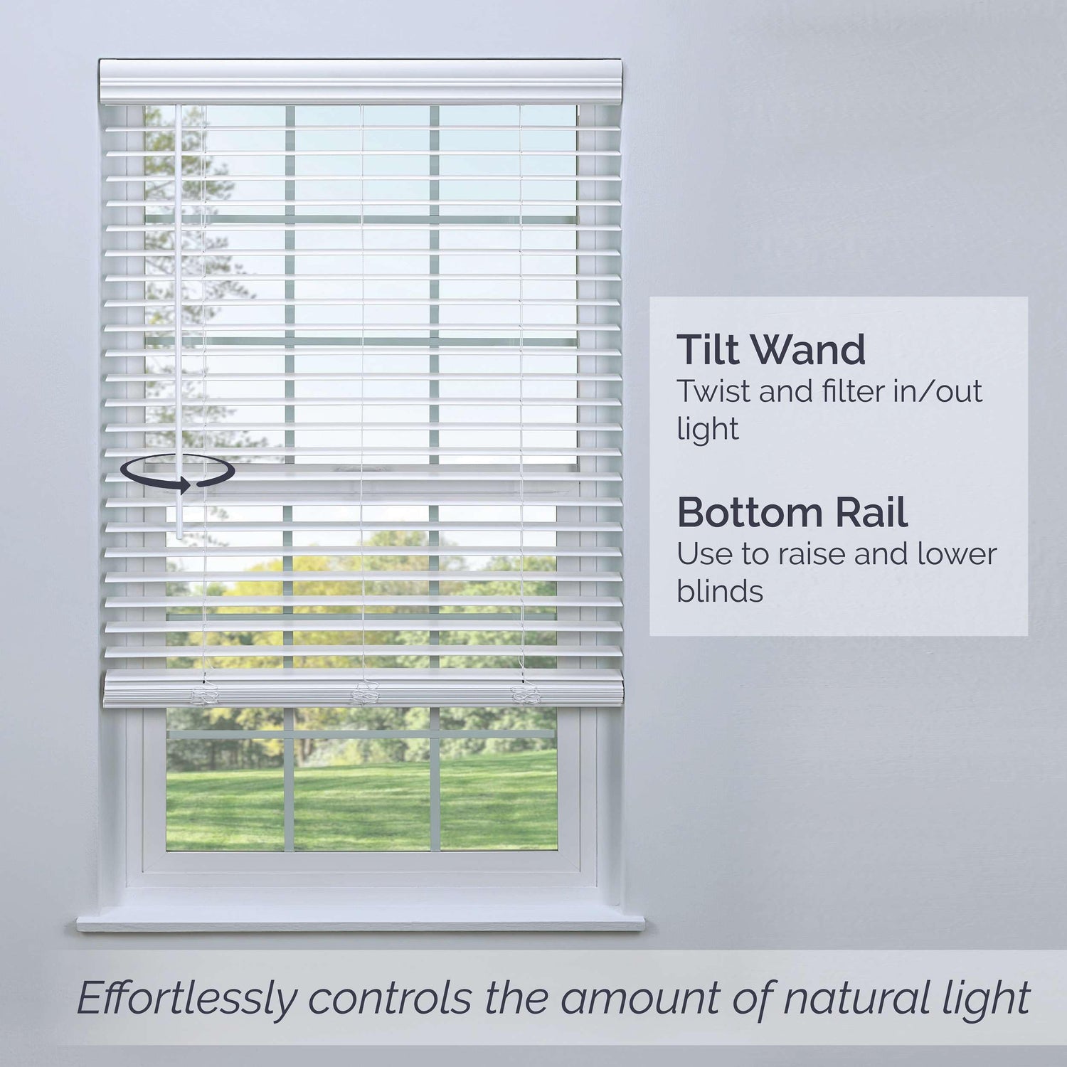 • | EASY OPERATION | Our cordless design allows you to effortlessly control the amount of light in your home with just the touch of a hand. The two-inch routed slats can be fully closed for privacy.