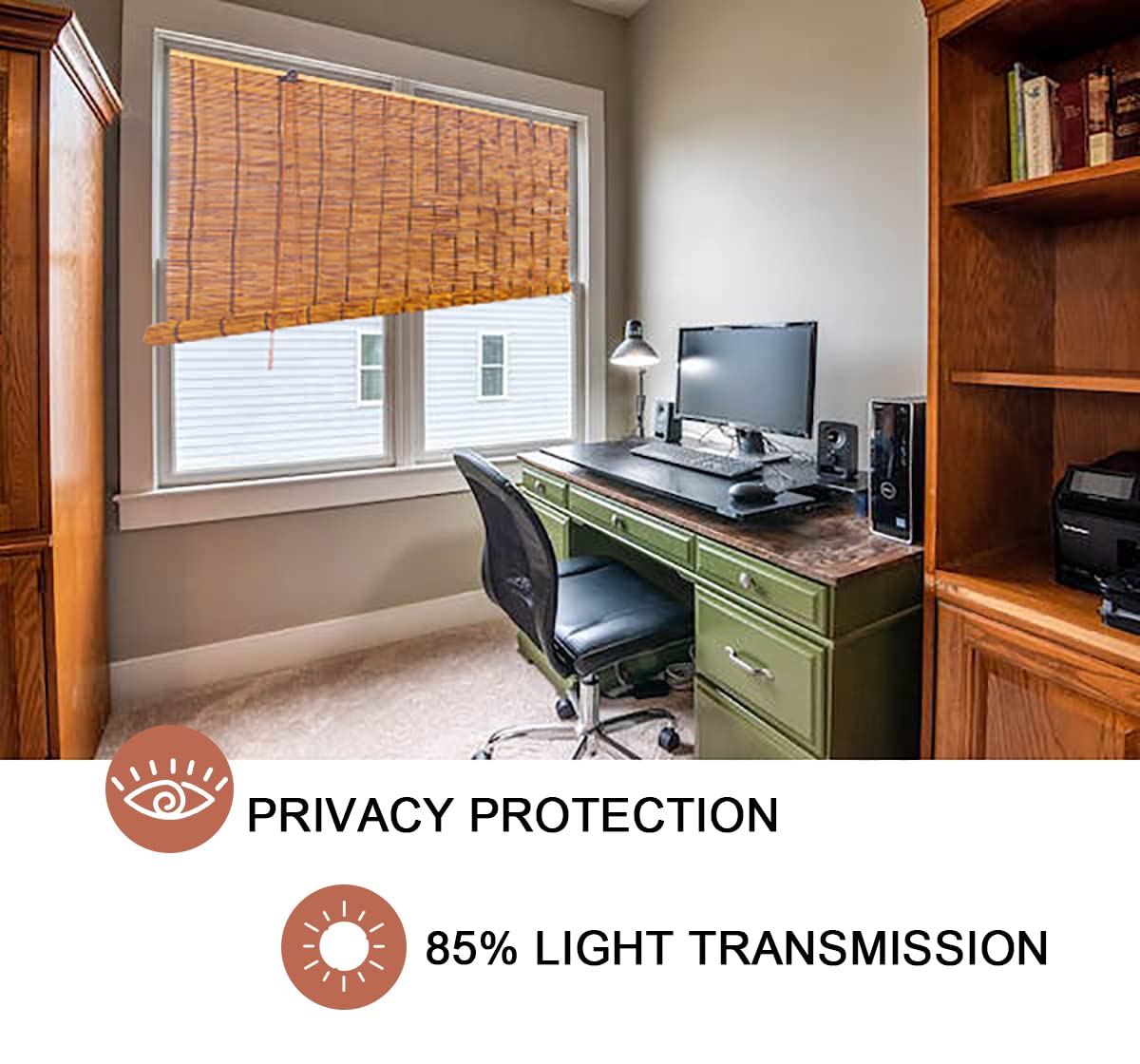 • ➤【Privacy Protection】:Our natural Bamboo Roller Shades block most of your view as well as most of the sun's heat, allowing 30% of natural light to enter in addition to providing privacy shade as well as the sun's heat.