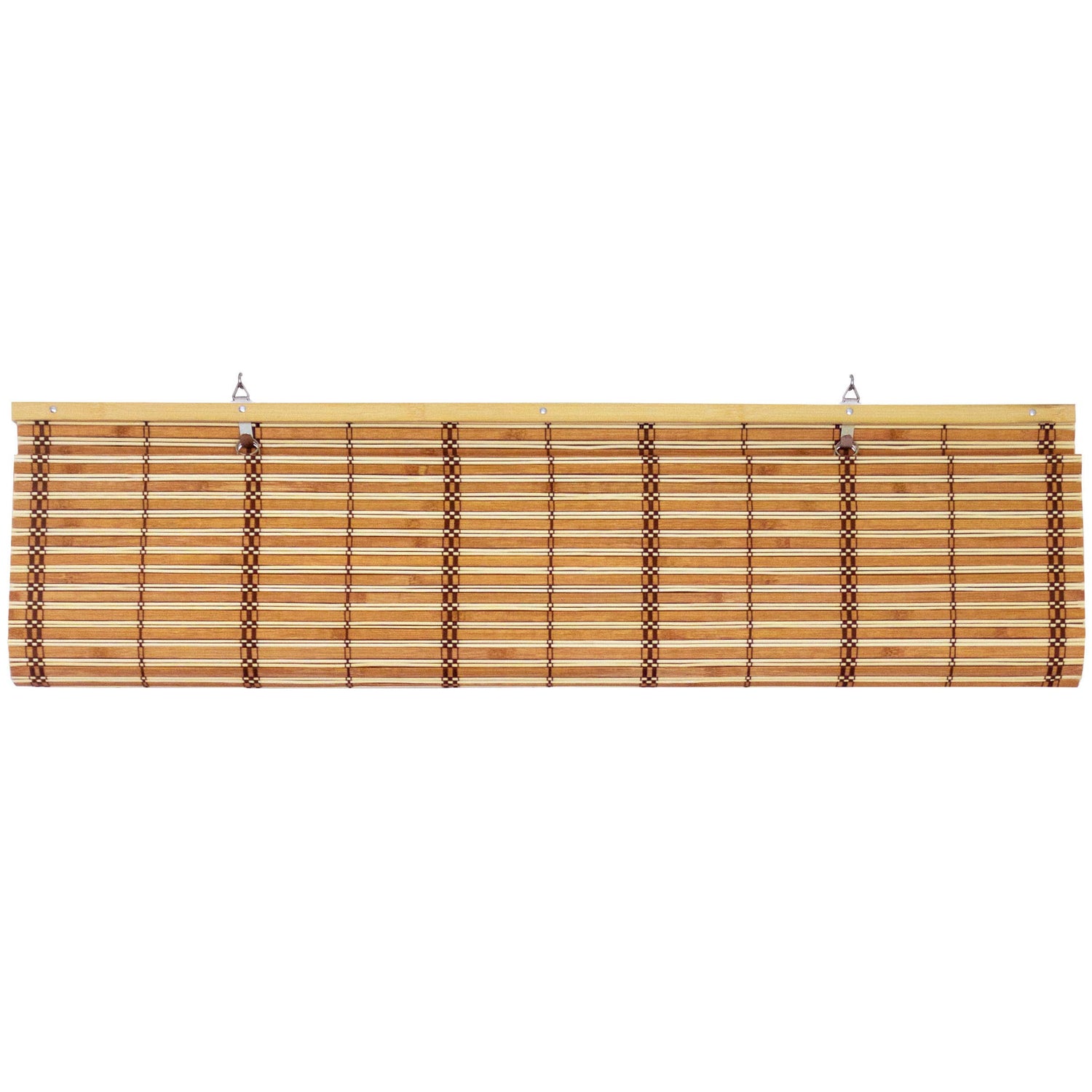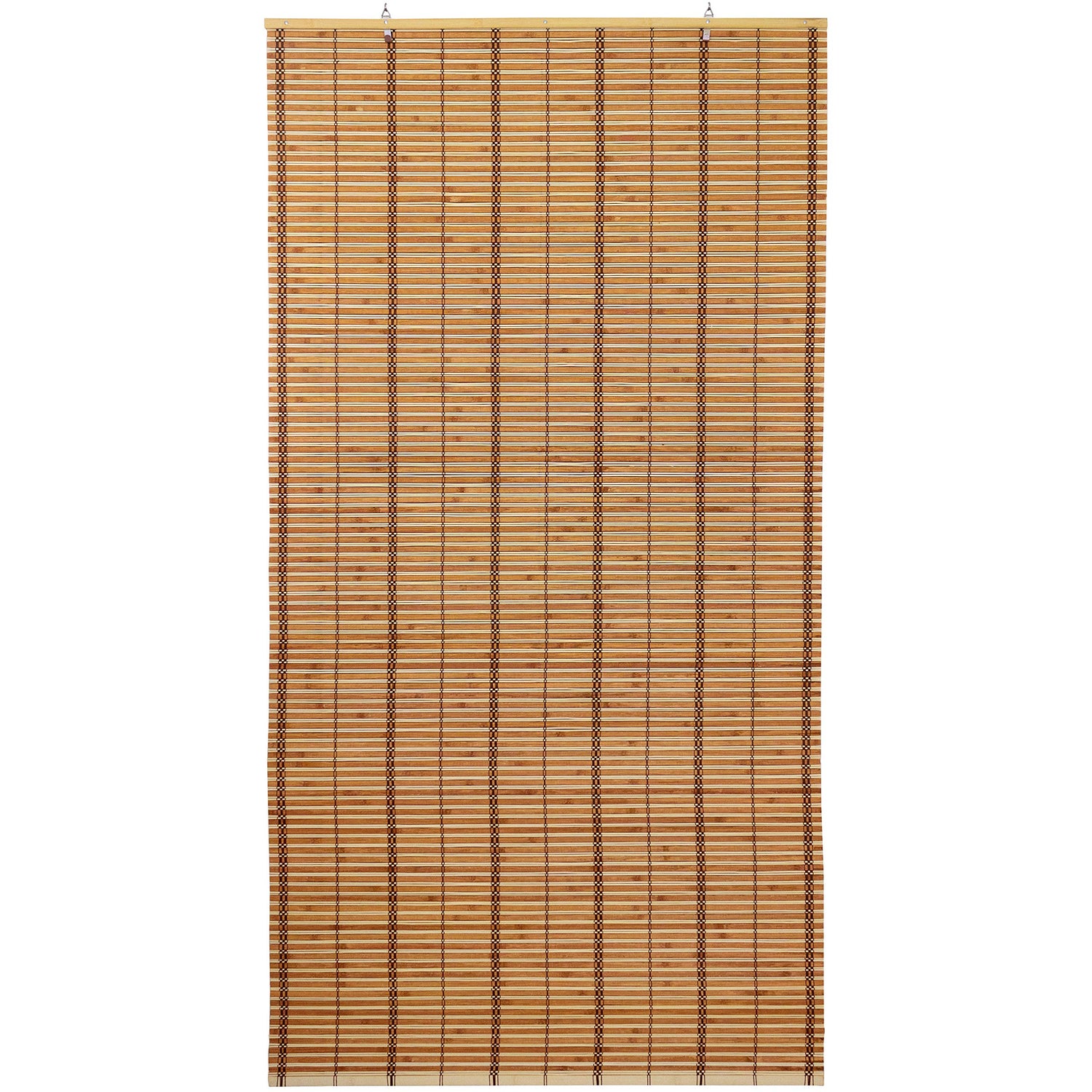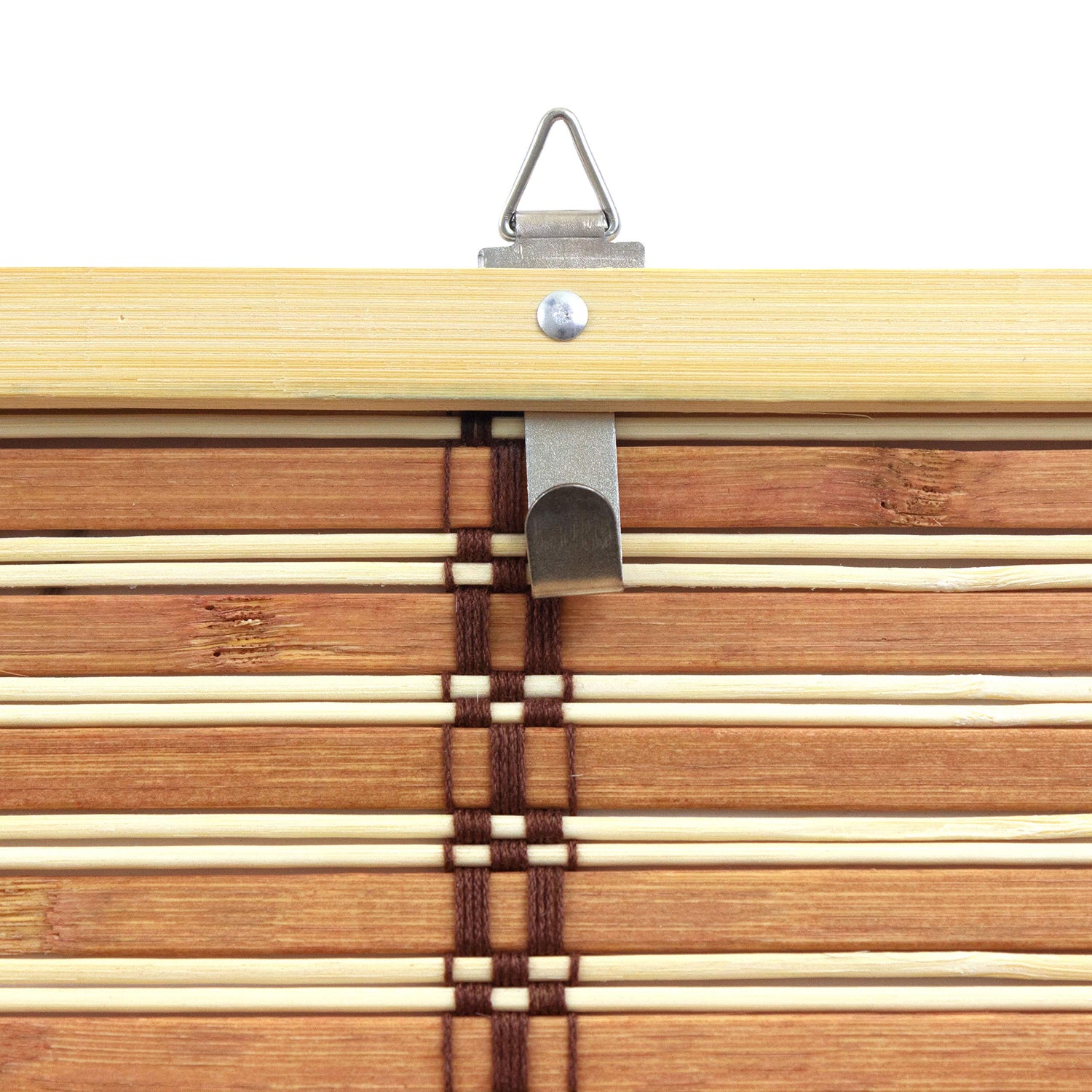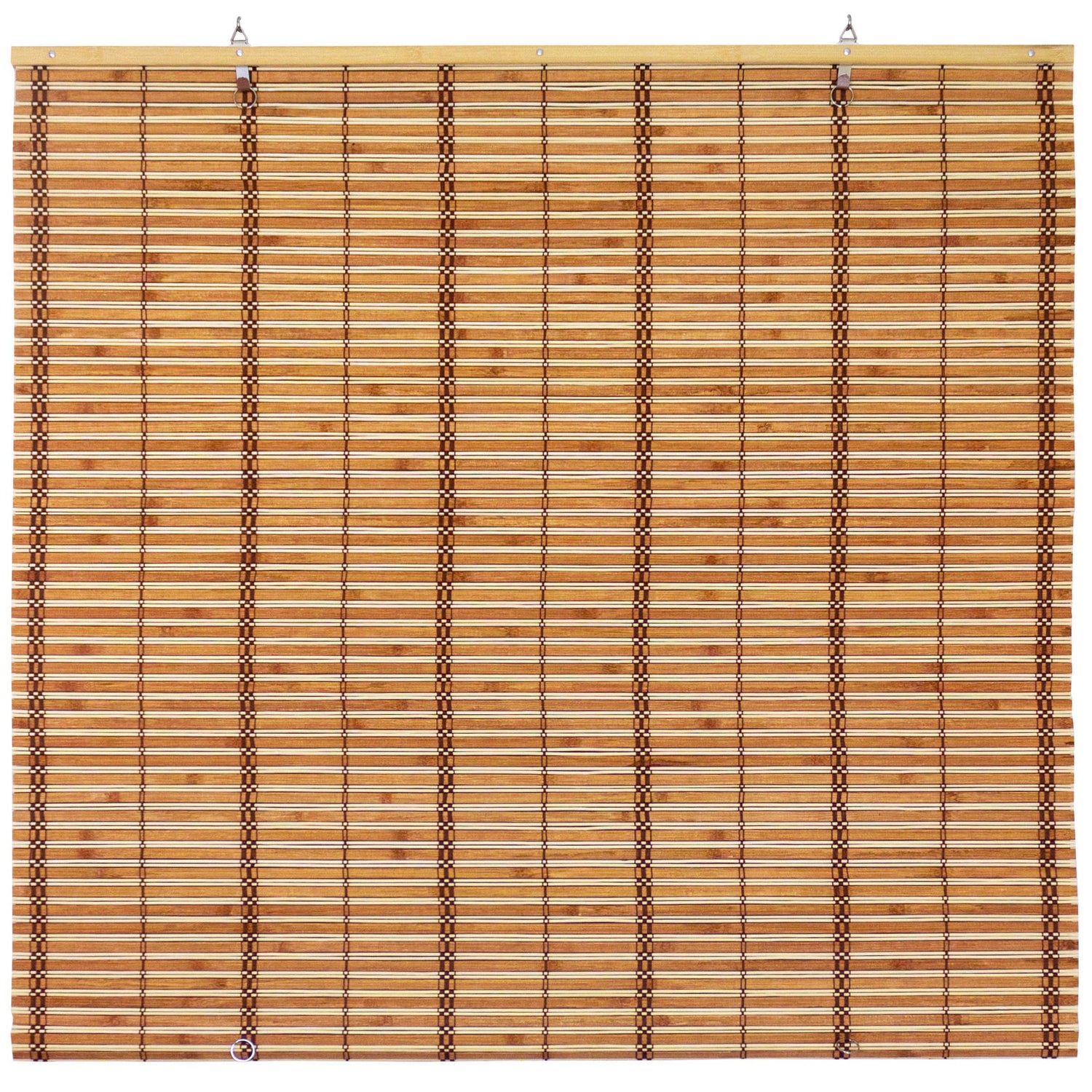 Details: This fashionable cordless window shade is constructed from all-natural, woven bamboo. The hued bamboo has an earthy, organic appearance that complements a wide variety of interior decorating styles.