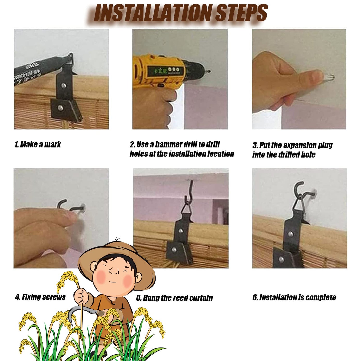 - [Easy to Install] The natural blinds roll up shade come with hooks and lifters, the drawstring design is easy to use, and the included hooks are easy to install, perfect for home and garden use. Reed curtains can be used with dry or wet cloths. Beautiful and durable, can be used for a long time.