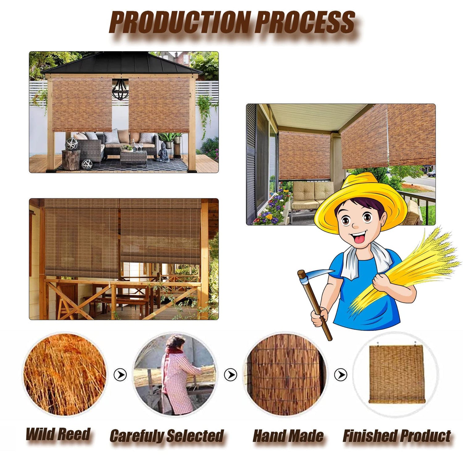- [Easy to Install] The patio shades roll up outdoor come with hooks and lifters, the drawstring design is easy to use, and the included hooks are easy to install, perfect for home and garden use. Reed curtains can be used with dry or wet cloths. Beautiful and durable, can be used for a long time.
