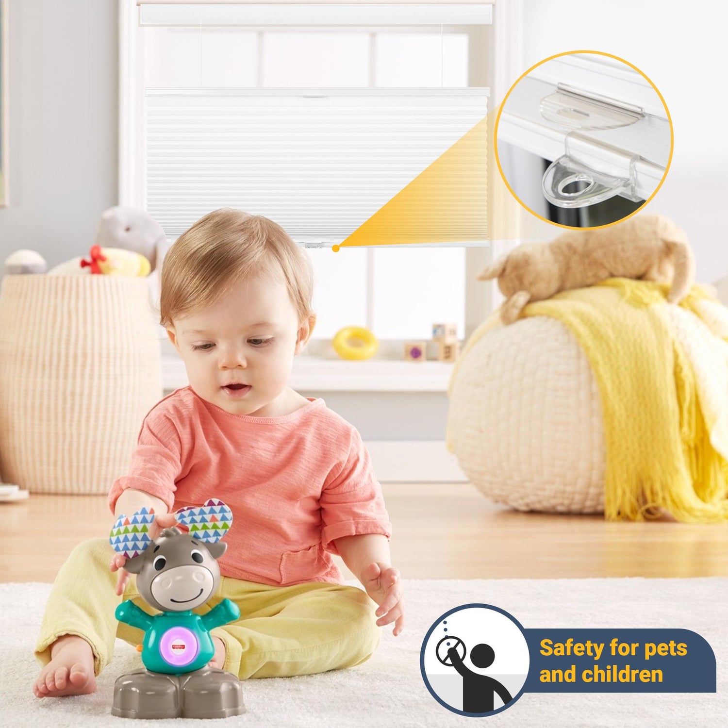 - 【Upgrated Cordless Design and Safe for Children】 Cordless design of the cellular shades Can be Controlled Up And Down Freely, Stop at Any Position, Cordless Lift System and handle are safe for pets and children.