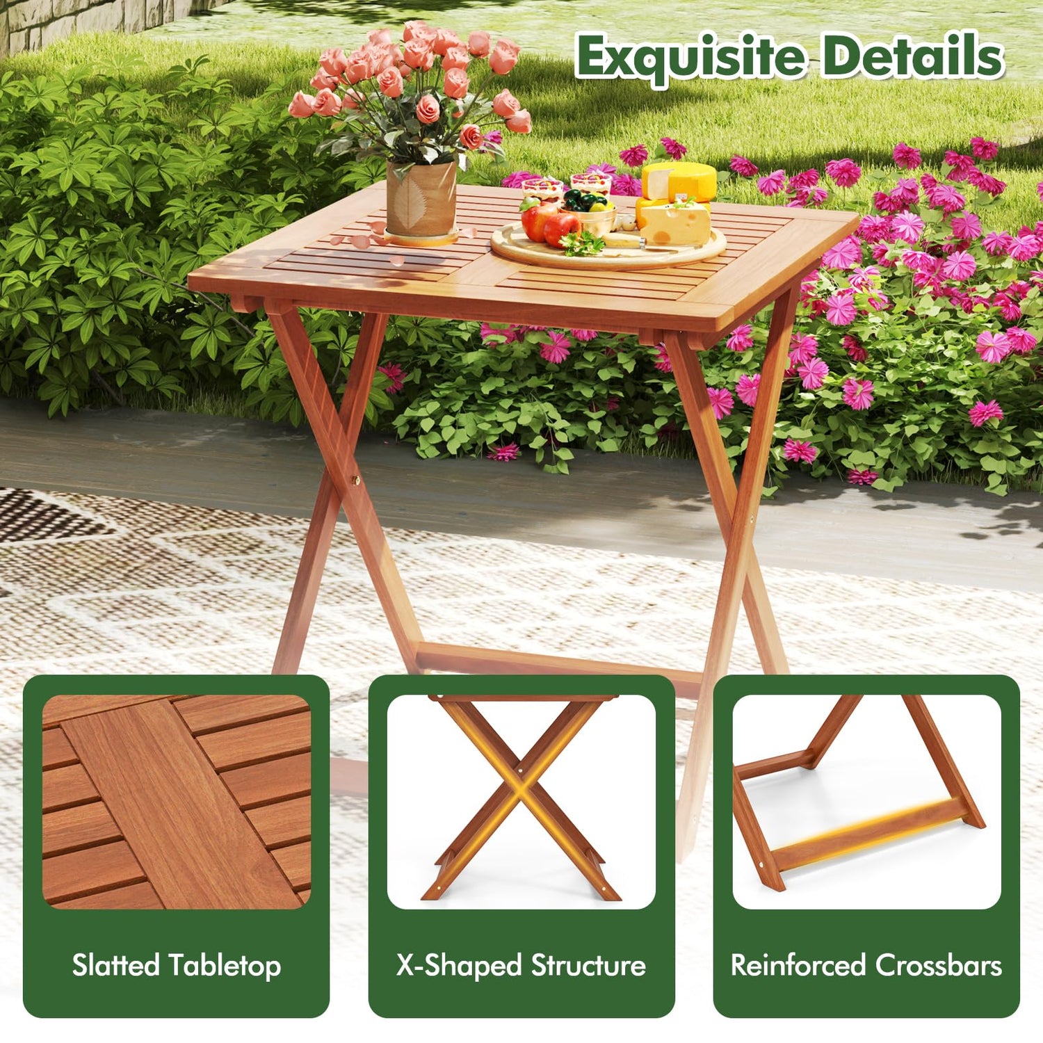 - Practical Foldable Design: The solid wood folding bistro table is designed with a user-friendly folding mechanism, making it effortless to store and transport. Simply unlock the fixing device to fold it up when not in use.