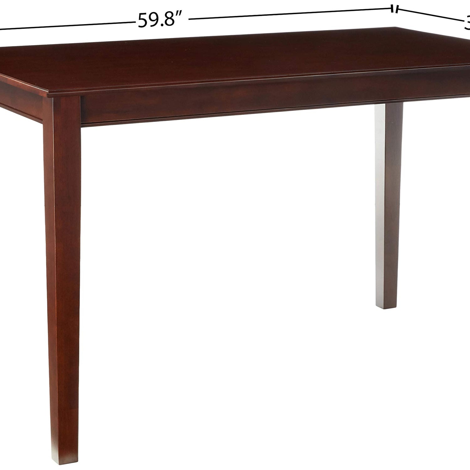 FEATURES: Material: Rubber Wood Table Top Style: Rectangular Modern Dining Room Table Top Color: Mahogany Dining Table Dimensions are: Length: 60; Width: 36; Height: 36.