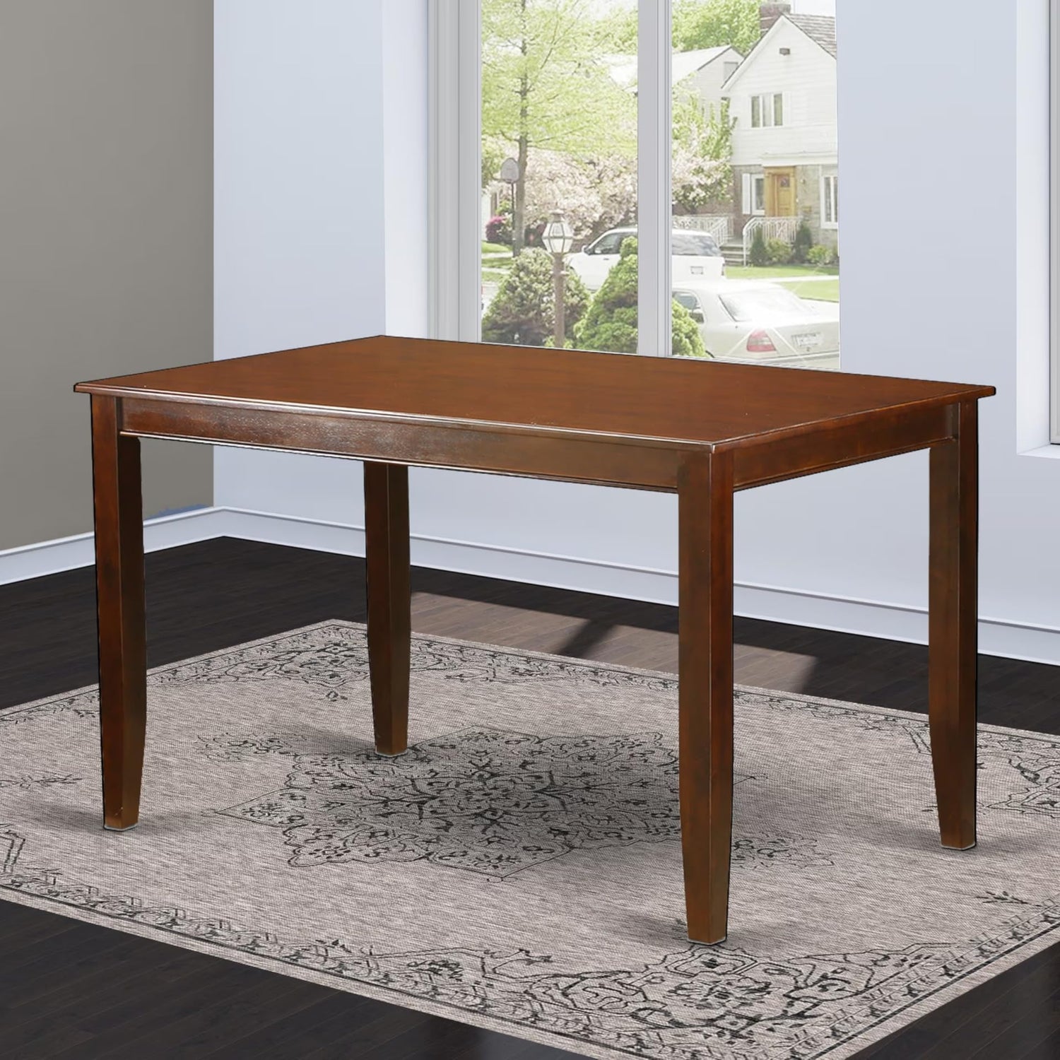 Experience delightful dinner time with your family using this exquisite modern kitchen table. Our contemporary dining table boasts remarkable legs and a striking top surface finished in exquisite Mahogany, resulting in a truly captivating and sophisticated appearance. Crafted from premium quality Asian wood, the table's frame guarantees both durability and reliable support, enhancing the beauty of any dining room. Its rectangular shape is perfectly sized for dinner, entertaining, and various events. With a stylish design, this breakfast table offers a blend of simplicity and elegance, ensuring sturdy comfort. Whether you desire a contemporary appearance in your dining room or a luxurious ambiance in the kitchen, this table is versatile for both settings. Assembling this dining table is a breeze, taking only a short amount of time, and it comes with all the necessary tools. Additionally, it is lightweight and easy to carry or move around. Make your dining experience exceptional with East West Furniture!