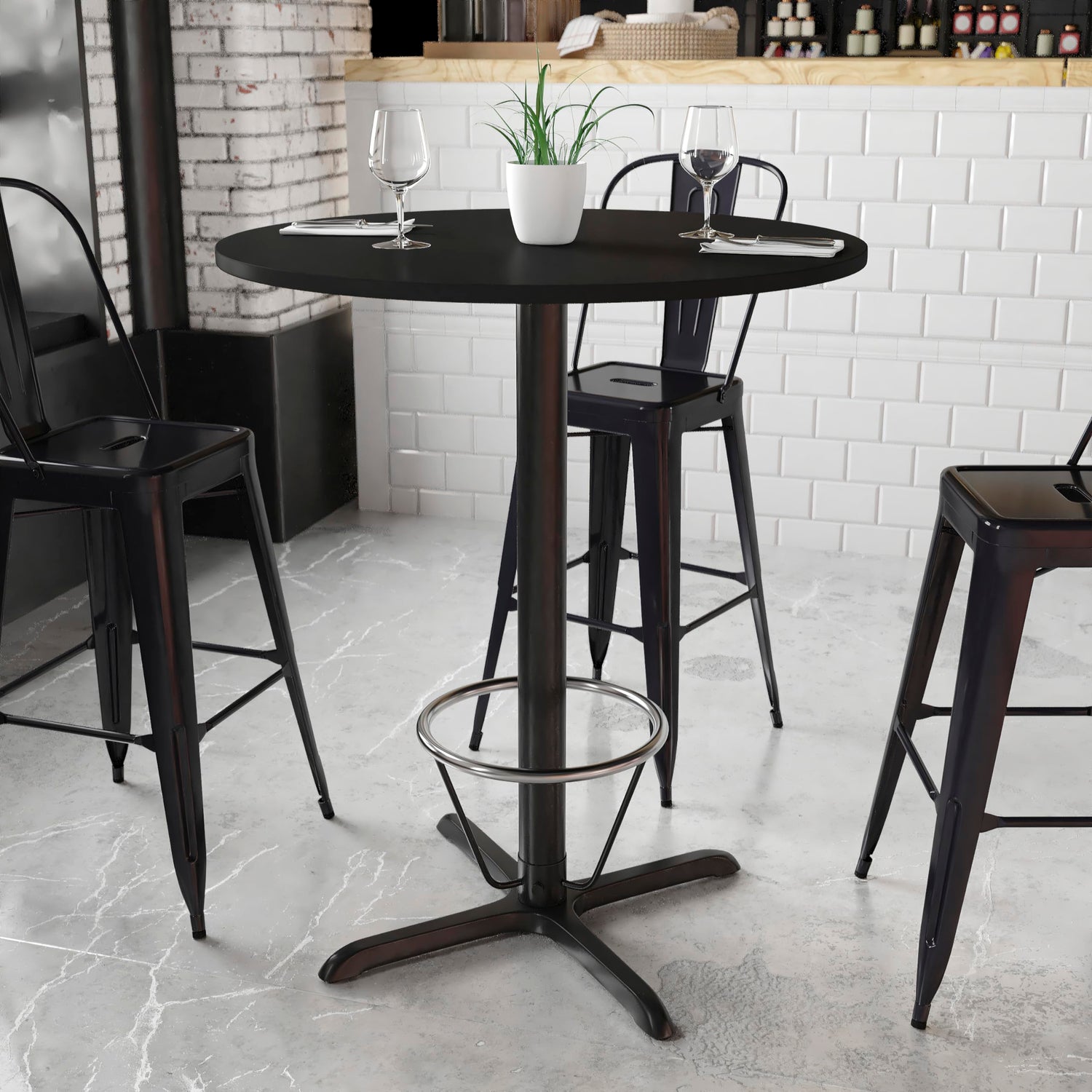 Flash Furniture 36'' Round Black Laminate Table Top with 30'' x 30'' Bar Height Table Base and Foot Ring