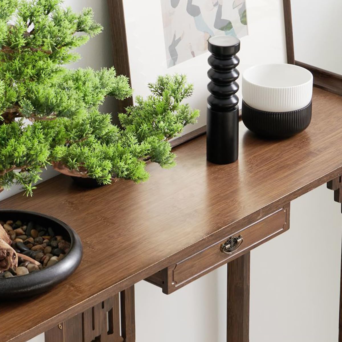 Gdrasuya10 Japanese Style Walnut Bamboo Console Table – Vintage Entryway Sofa Table with Drawer (40 inch)