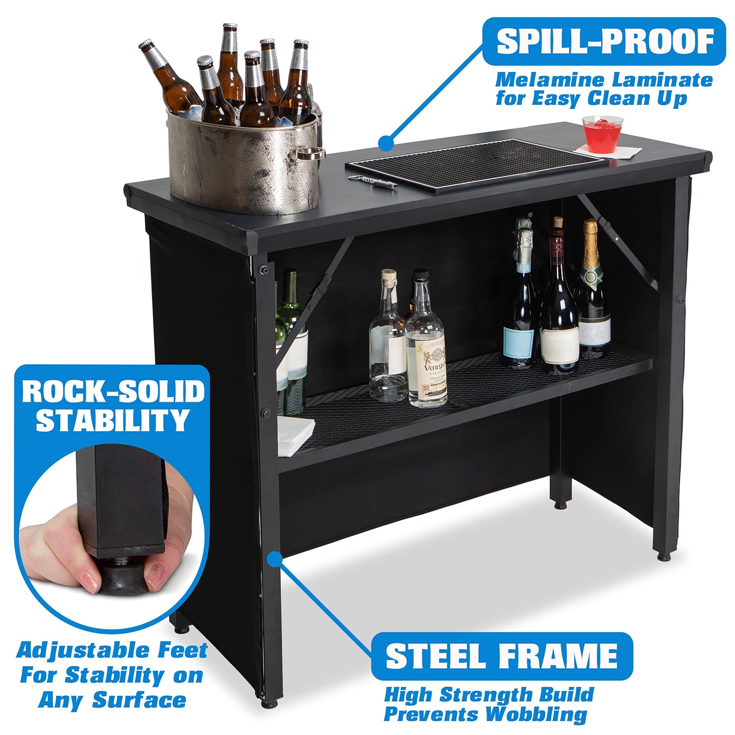 - PROFESSIONAL POP-UP BAR: The GoBar PRO is a rock solid portable bar table that sets up in seconds; Perfect for professional trade show demos and bartending at weddings, birthday parties, corporate events and more