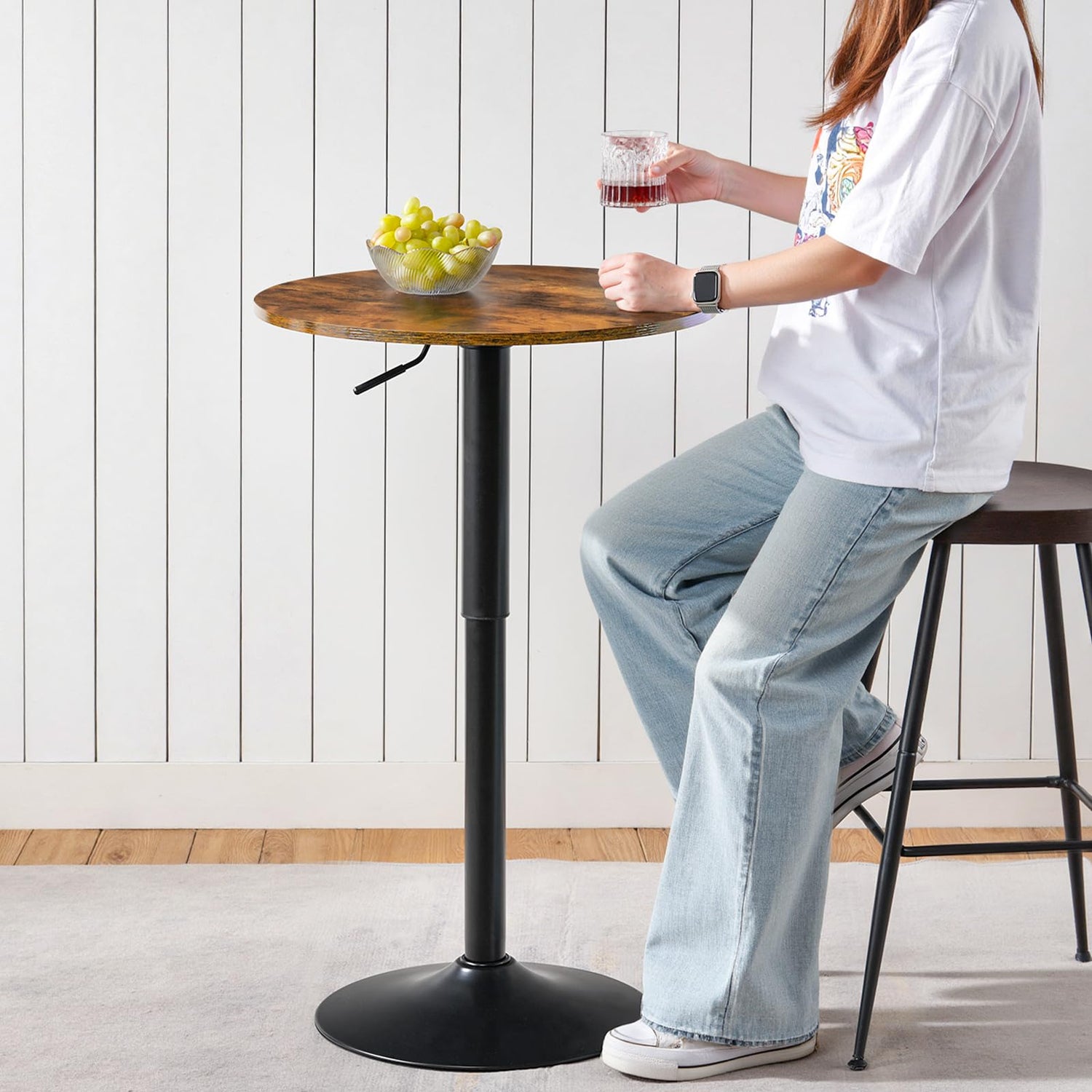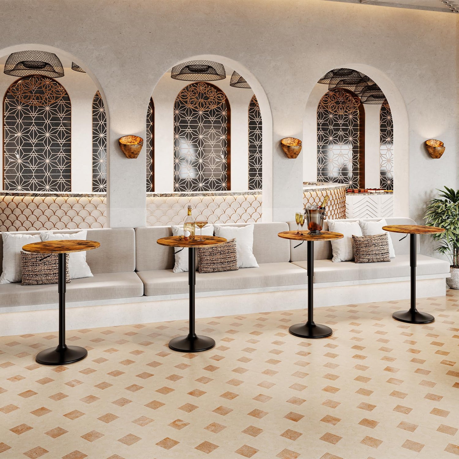 HOOBRO 2 Pcs Bar Table, Height-Adjustable Round Pub Table 27-35.4 Inches with Sturdy Base, Modern Style, Easy to Assemble, Suitable for Small Space, Rustic Brown and Black BF58BTP201G1