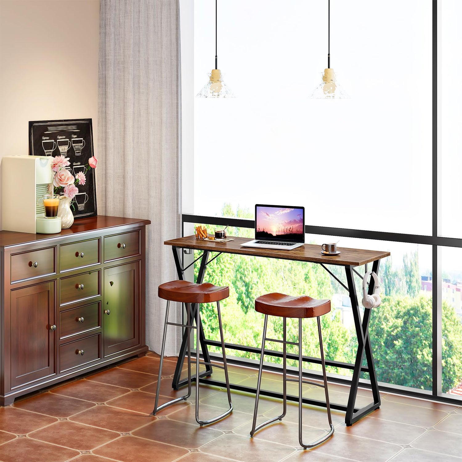 - 39.4-Inch Bar Table: The bar table measures 39.4"L x 15.7"W x 35.4"H, providing ample space for drinks and dishes. The additional hooks on both sides conveniently hold coats, bags, or other daily items