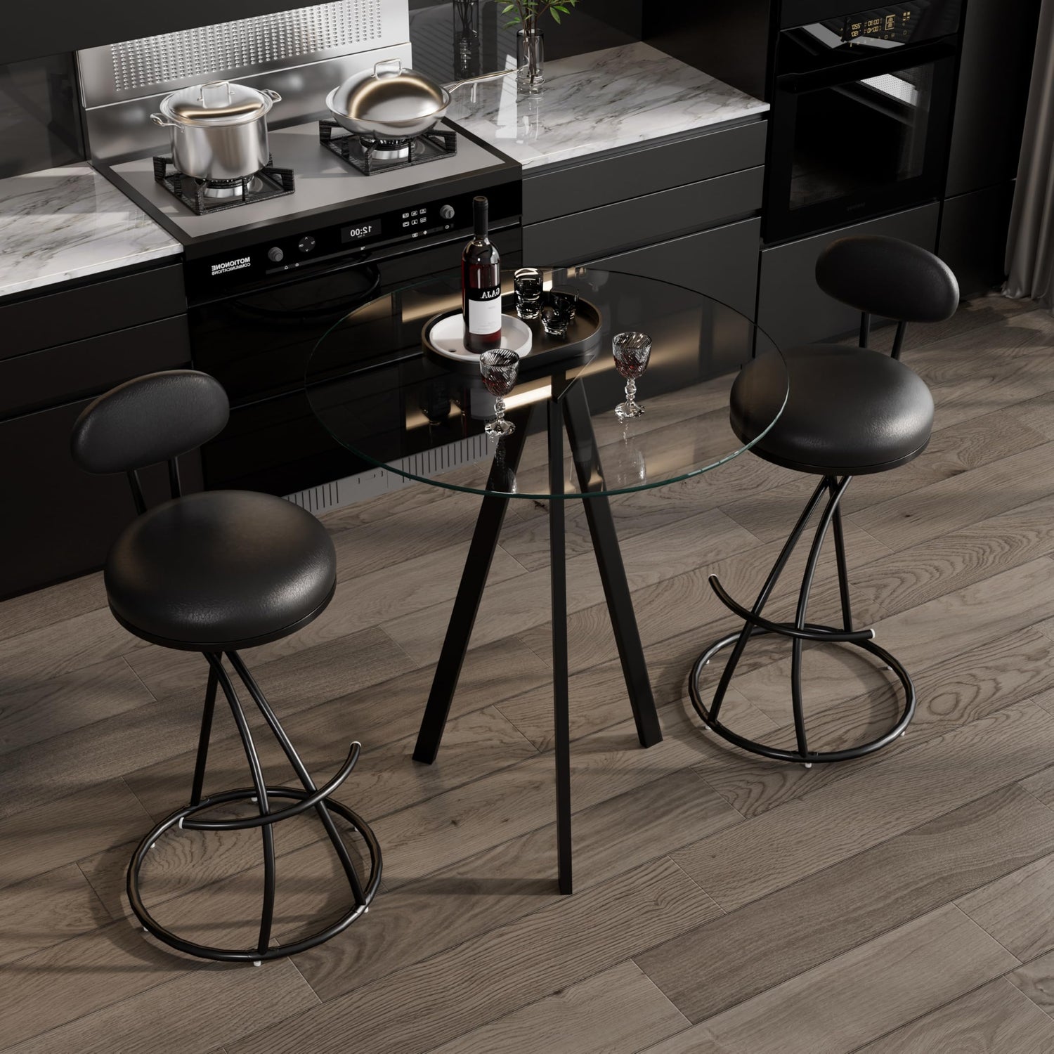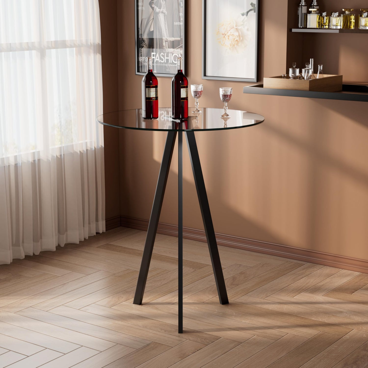 • Glass Round Bar Table: The pub table is supported by a high quality glass top and stable metal legs.The round table top is made of 0.3" thick glass. The legs are distributed in a triangular shape to make the table more stable
