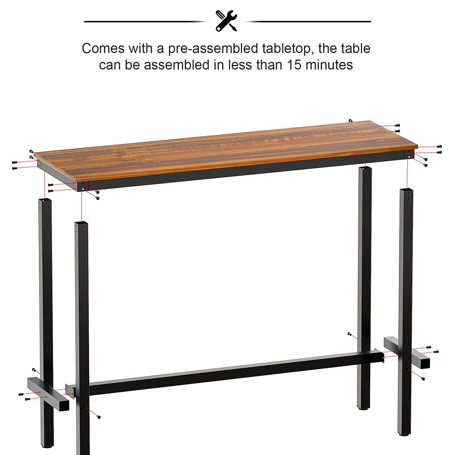 - **Effortless Assembly and Maintenance**: Assembling the Teraves Bar Table is a breeze – simply attach the legs and you’ll have a stunning bar height table ready in minutes. All necessary instructions, screws, and tools are included. The convenient footrest can be disassembled for efficient storage underneath the table. Plus, the tabletop boasts a classic texture that is waterproof, scratch-resistant, and easy to clean.