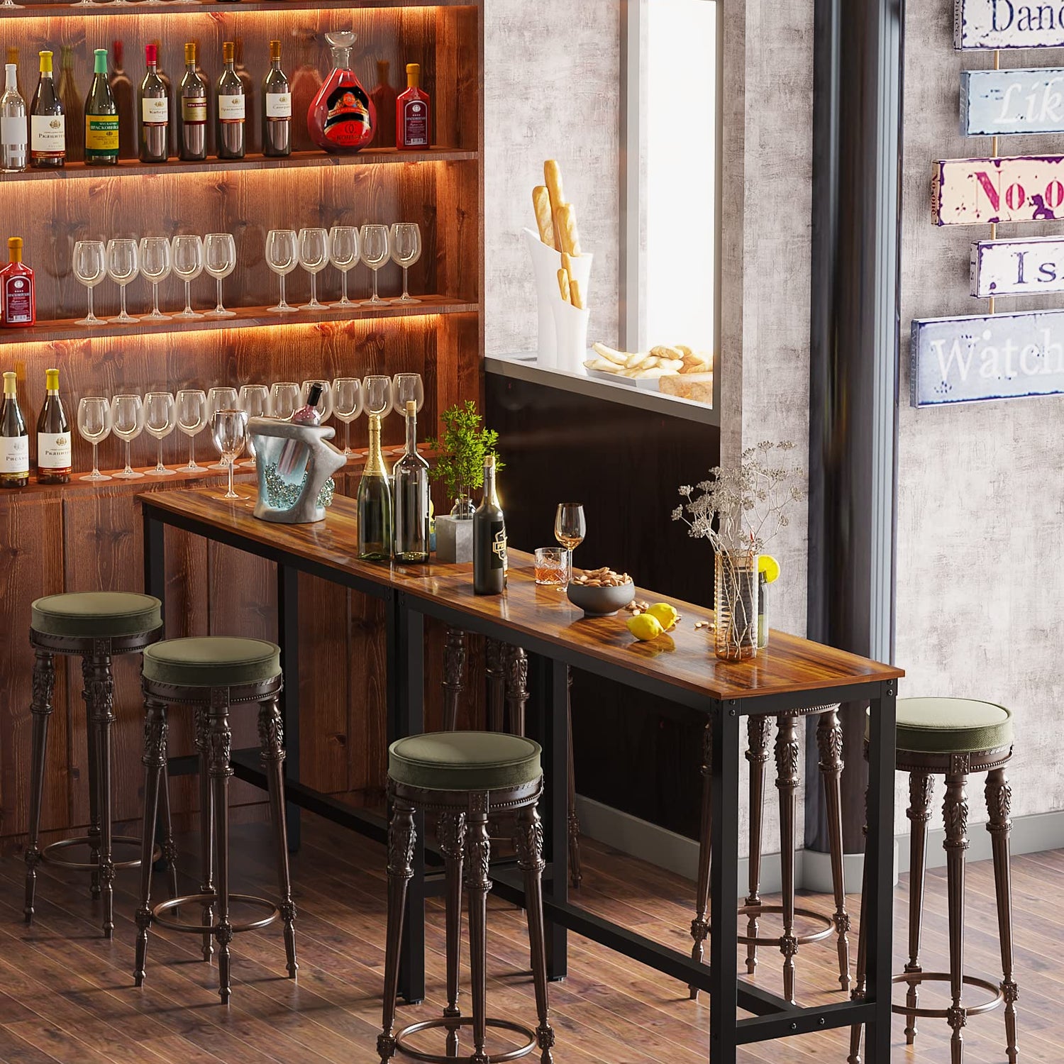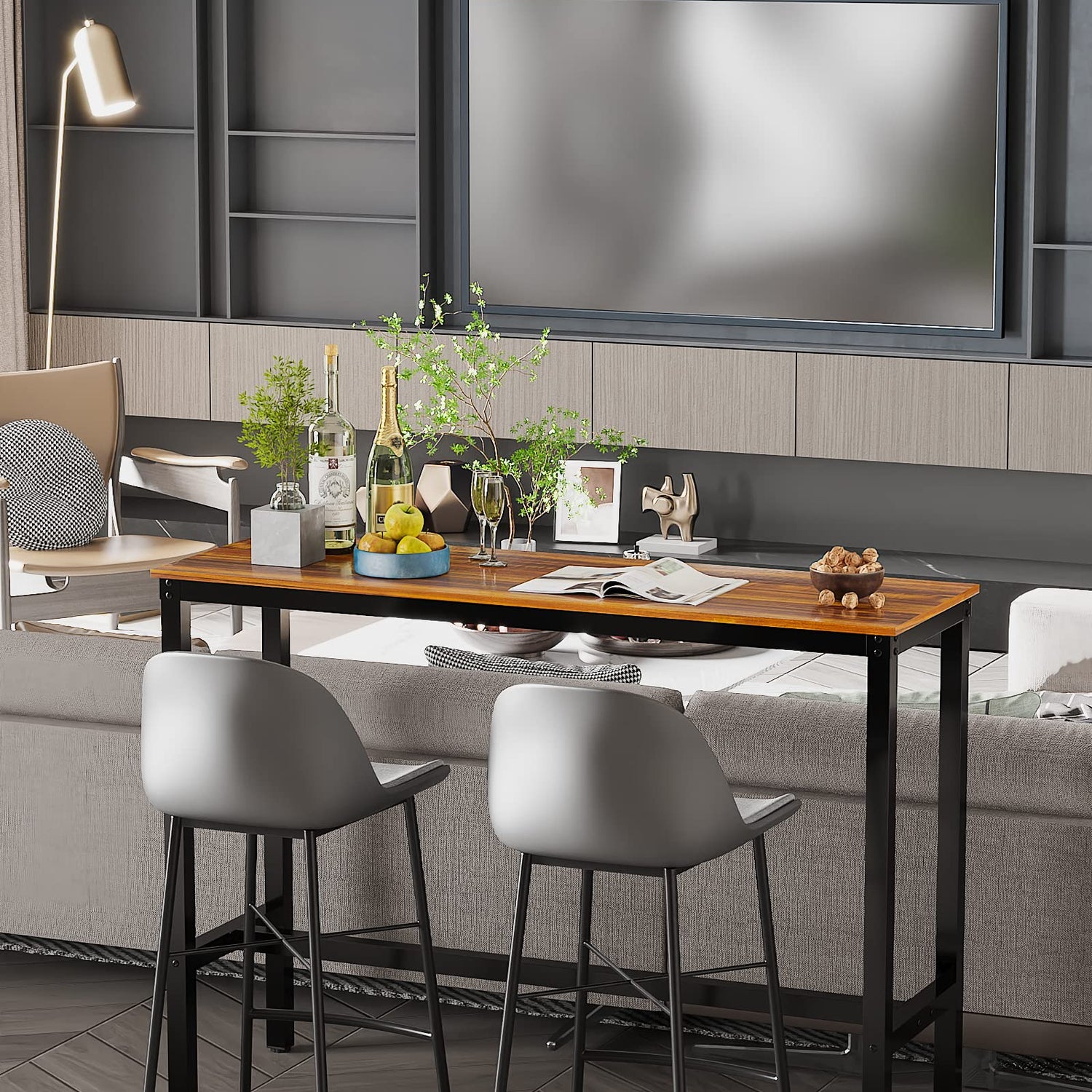 - **Versatile Uses**: The Teraves Bar Table is not just a piece of furniture; it's a versatile addition to your environment. Perfect for use in homes, restaurants, bars, pubs, bistros, coffee shops, kitchens, living rooms, entryways, libraries, and during gatherings like parties and weddings. It can serve multiple purposes, from a pub/bar table to a dining table, sofa table, entryway table, or console table.