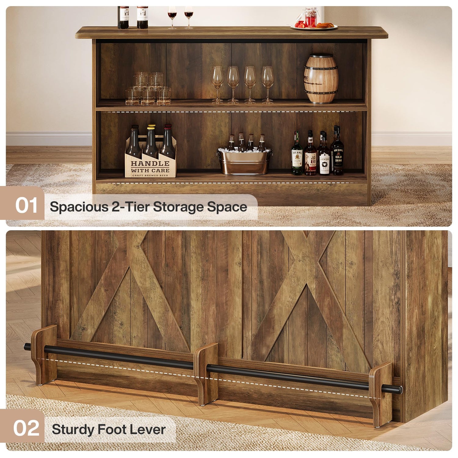 • Large Countertop & Ample Storage: The 63" L x 15.75" W countertop provides plenty of mixing space, while two open shelves store bottles, glassware, and bar essentials—keeping everything organized yet stylish