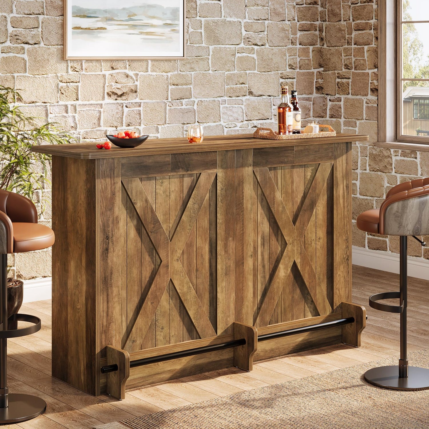 Tribesigns 63-Inch Bar Table, 2-Tier Bar Cabinet Height Pub Table with Footrest, Modern Coffee Cabinet for Home Kitchen, Large Home Unit Liquor Furniture, Bistro, Dining Room, Living Room, Brown