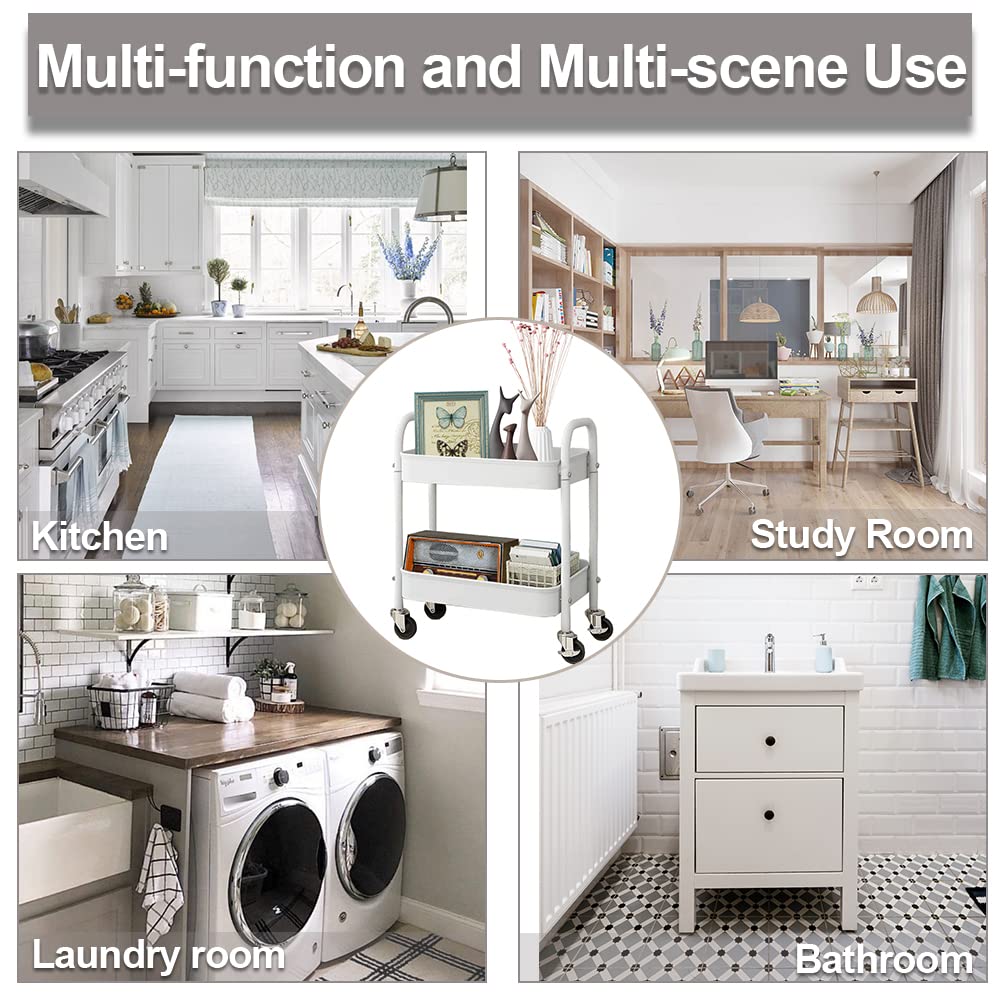 - Multifunctional Storage: This 2 tier rolling storage cart has multiple functions which can be used anywhere you want it to be such as office, bathroom, kitchen, art studio, salon, garden, garages, laundry rooms hobby and craft areas and so on. It can be used as a tools cart, organization rack, sofa or bed side end table, nightstand, book cart, bedroom/living room storage cart and so on.