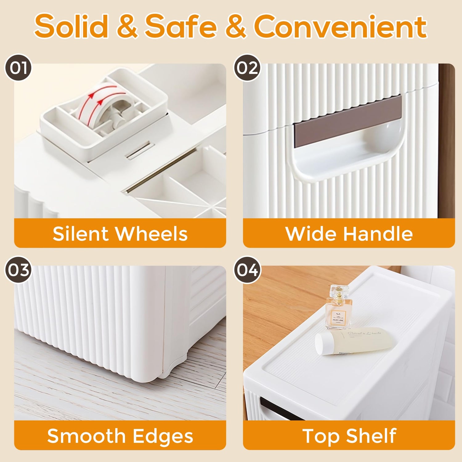 - [Large Capacity and Multi-purpose] This slim cabinet is composed of multiple drawers, with huge storage space. Different drawers can store different items, making your space more tidy and orderly. The elegant appearance can fit any style of room. You can use it as a bathroom cabinet, kitchen storage cabinet and living room side cabinet to store towels, papers, cosmetics, toiletries and other daily necessities;