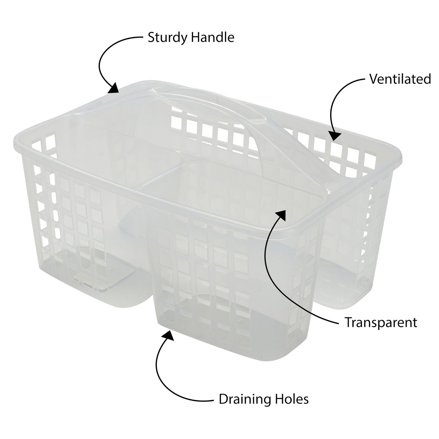 - DURABLE: The durable plastic construction is strong enough to hold shampoo, condition, soap, razor, and more. It can carry everything you need for your bathroom trip.