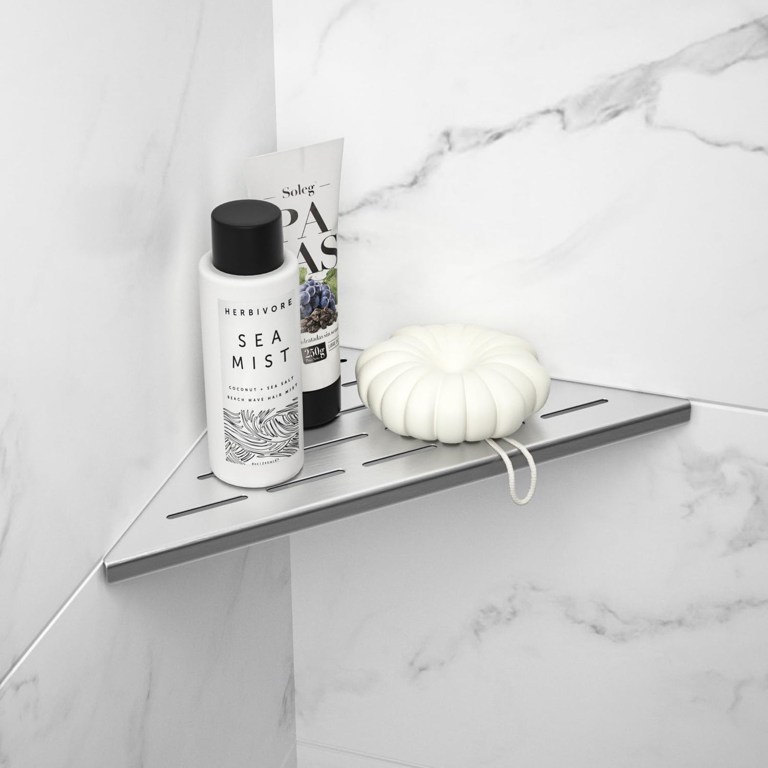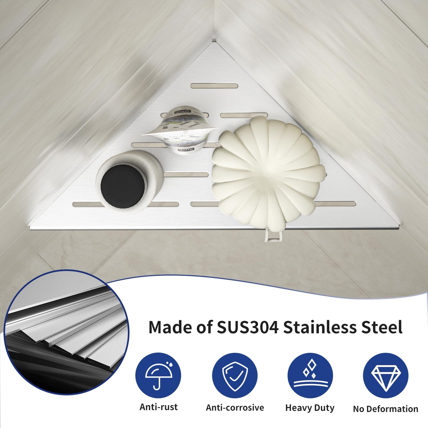 - 【Rapid Drainage】No water pooling. Slots on corner shelf can make water drain fast and keep your bath products on the shower shelf dry and clean. It can also be used as a footrest when shaving. Matching shower drain grates and shower niches are also available.