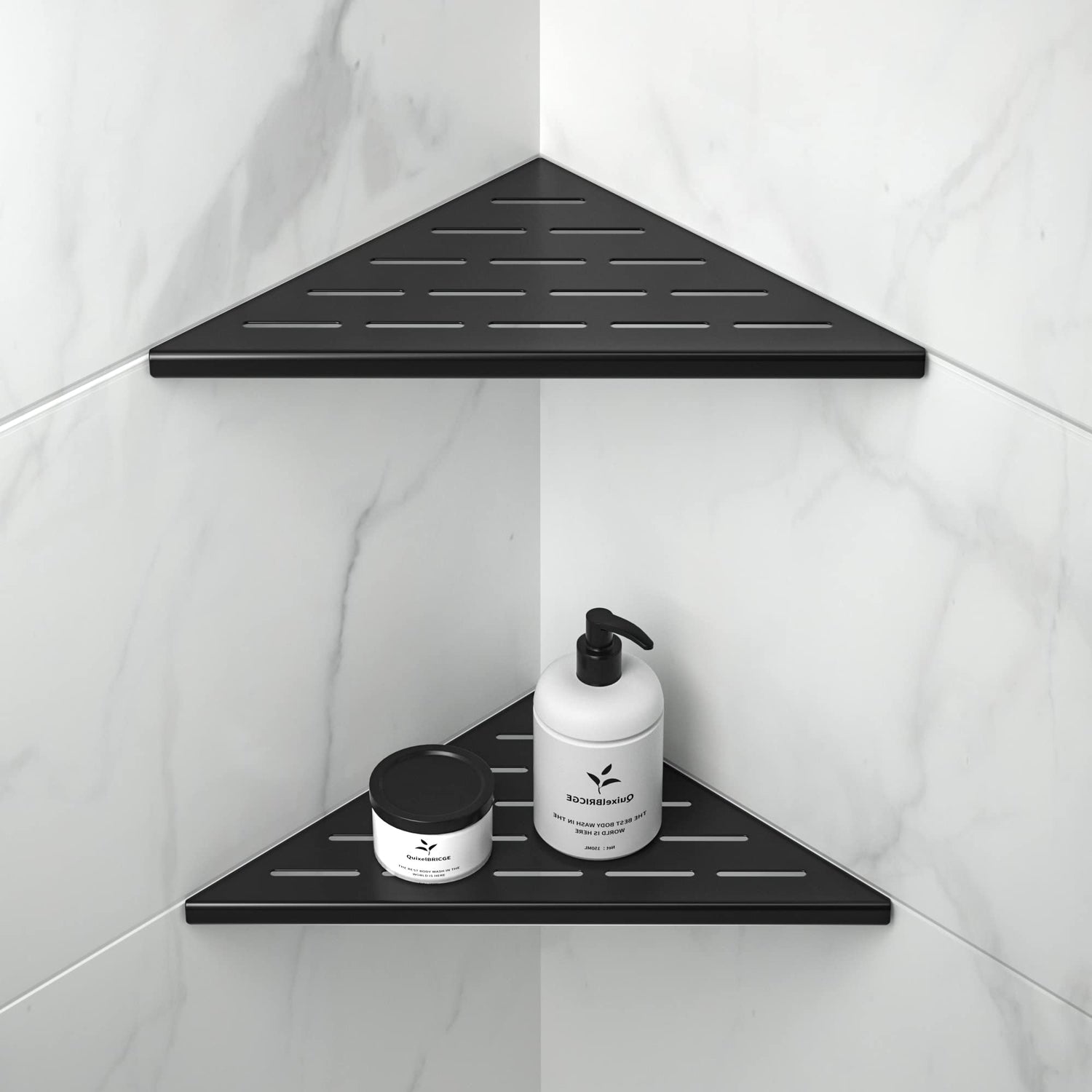 - 【Rapid Drainage】No water pooling. Slots on corner shelf can make water drain fast and keep your bath products on the shower shelf dry and clean. It can also be used as a footrest when shaving. Matching shower drain grates and shower niches are also available.