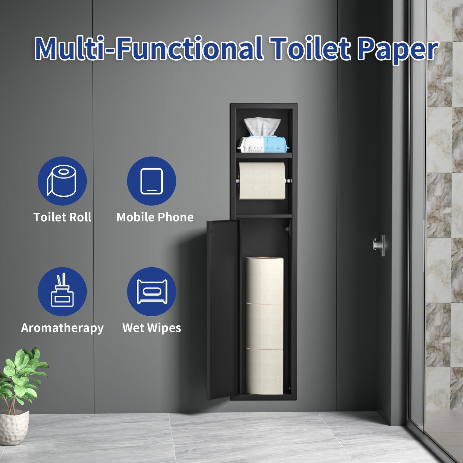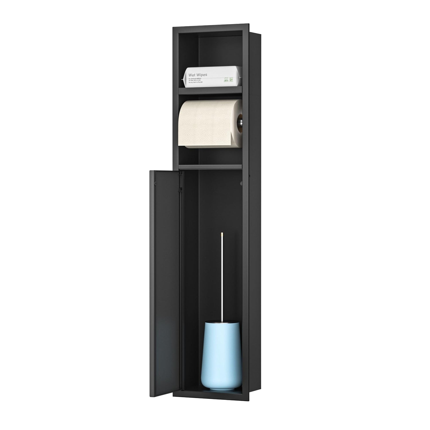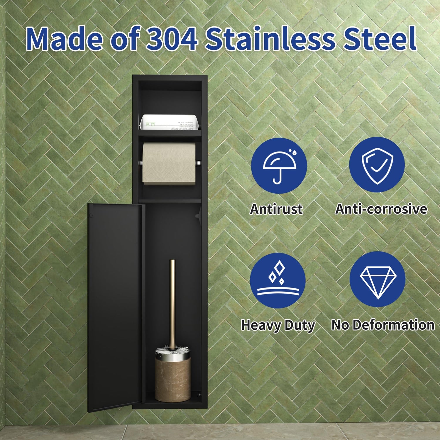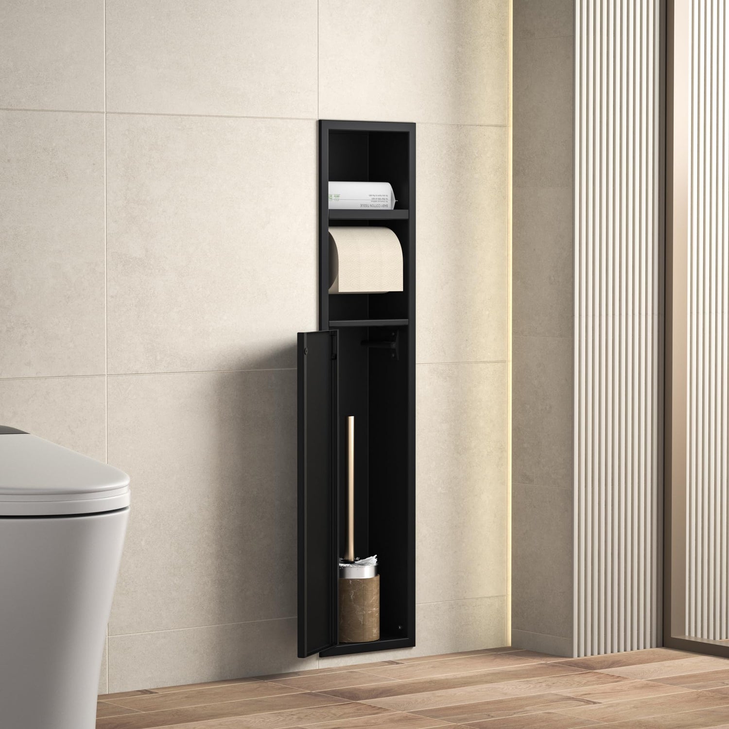 Bernkot in Wall Toilet Paper Niche w/Shelf, Recessed Toilet Roll Holder for Bathroom Remodeling, 304 Stainless Steel Covered Brush Holder (Matte Black)