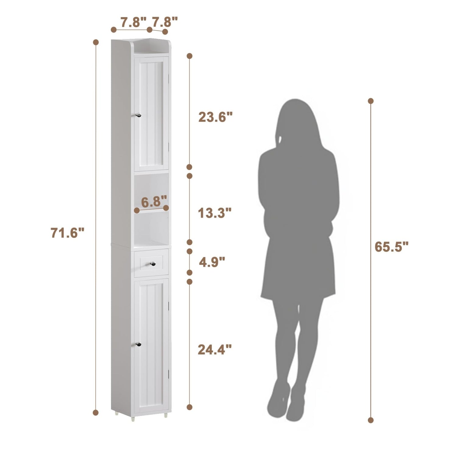 - 【Maximize Small Spaces】The narrow storage cabinet is designed for newly renovated small bathrooms, and measures 7.87" x 7.87" x 70.87", making it a space-saving storage solution. Its tall, slim design efficiently utilizes vertical space while taking up minimal floor area