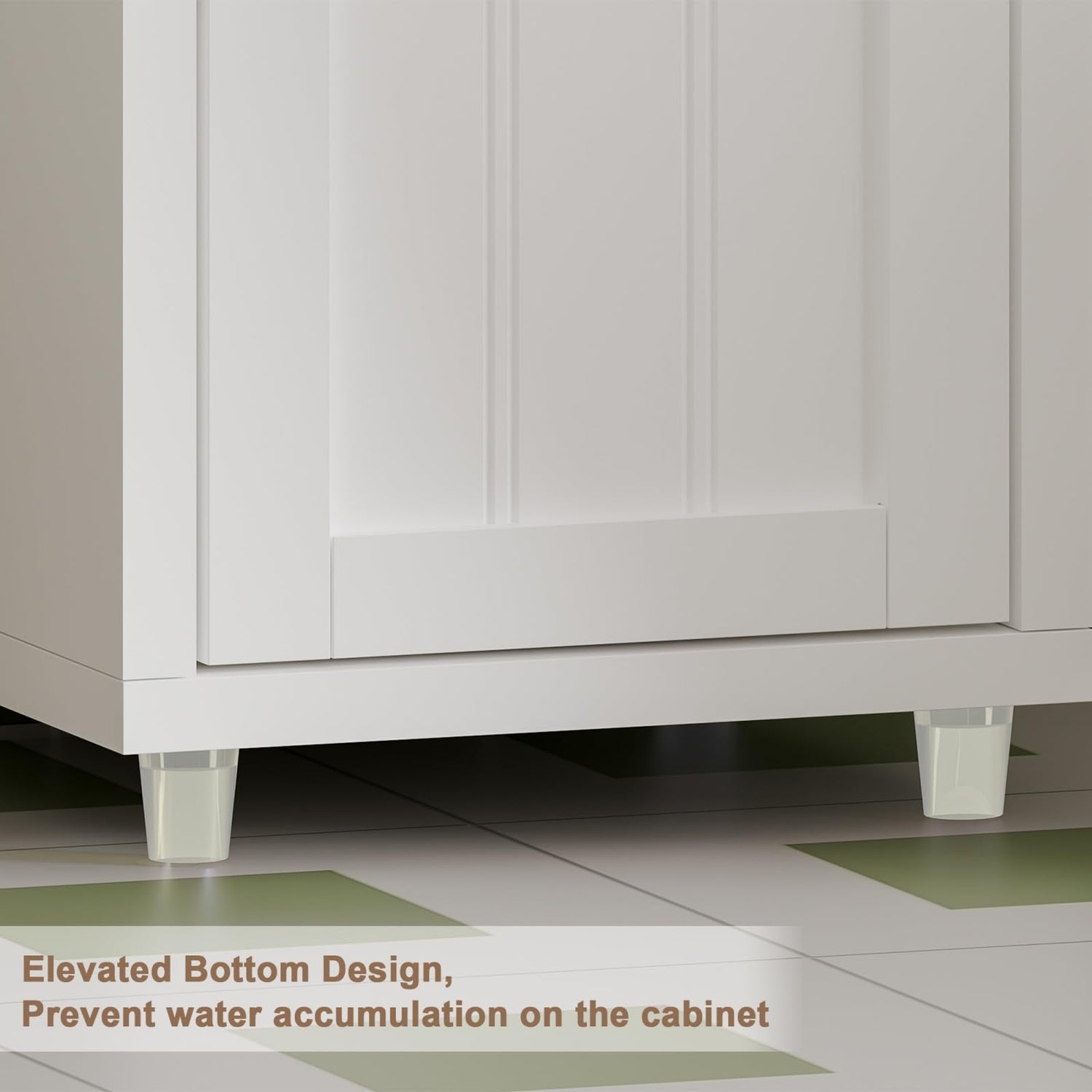 - 【Modern Double-Line Carved Door Style】Featuring a double-line carved door design, this white storage cabinet adds a stylish and elegant touch to any space. The white finish with metal handles enhances its modern aesthetic, making it a perfect fit for bathrooms, living rooms, or laundry rooms