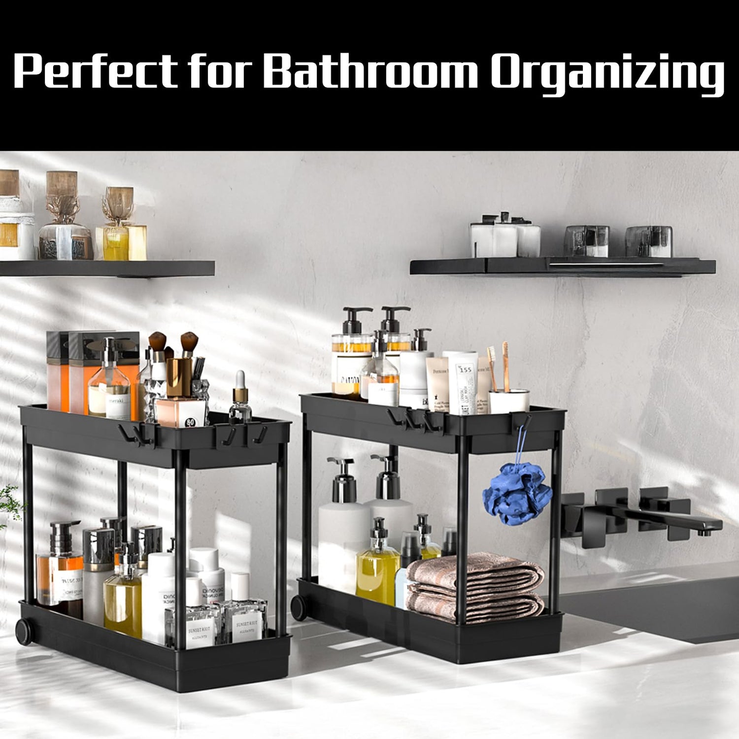 • Wide usage Organizer: This stunning storage rack is as functional as it is aesthetically pleasing. Perfect for bathroom, kitchen, living room, office. It can be used as a under sink organizer, bathroom storage, cosmetic storage standing shelf, kitchen spice rack or separate from 2 layers to a tray, perfect for holding glasses, plates, bowls, etc.