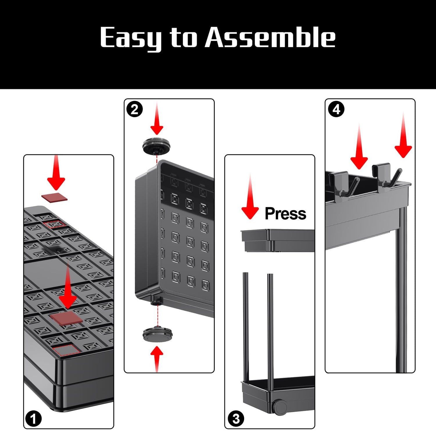 • Stable Premium Material Storage: The bathroom organizer under sink are made from high-quality ABS plastic materials, 4 support tubes adopt spray painting and thickening wrought iron body, good rust prevention and strong bearing capacity.
