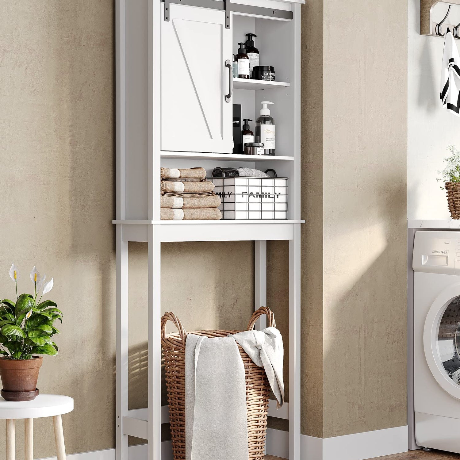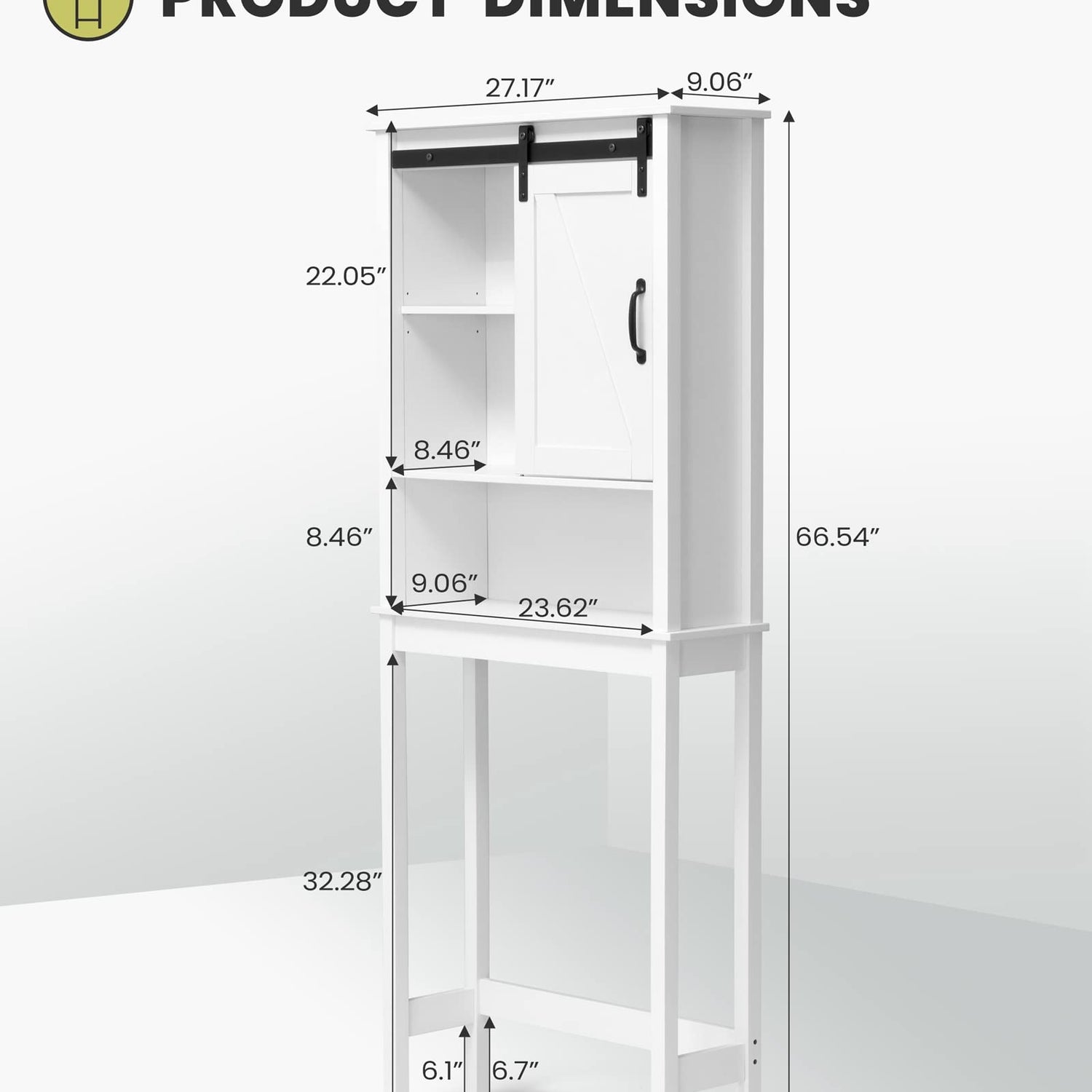 Crestlive Products Over The Toilet Storage Cabinet, Wood Bathroom Organizer with Adjustable Shelves and Sliding Barn Door, Bathroom Space Saver-White