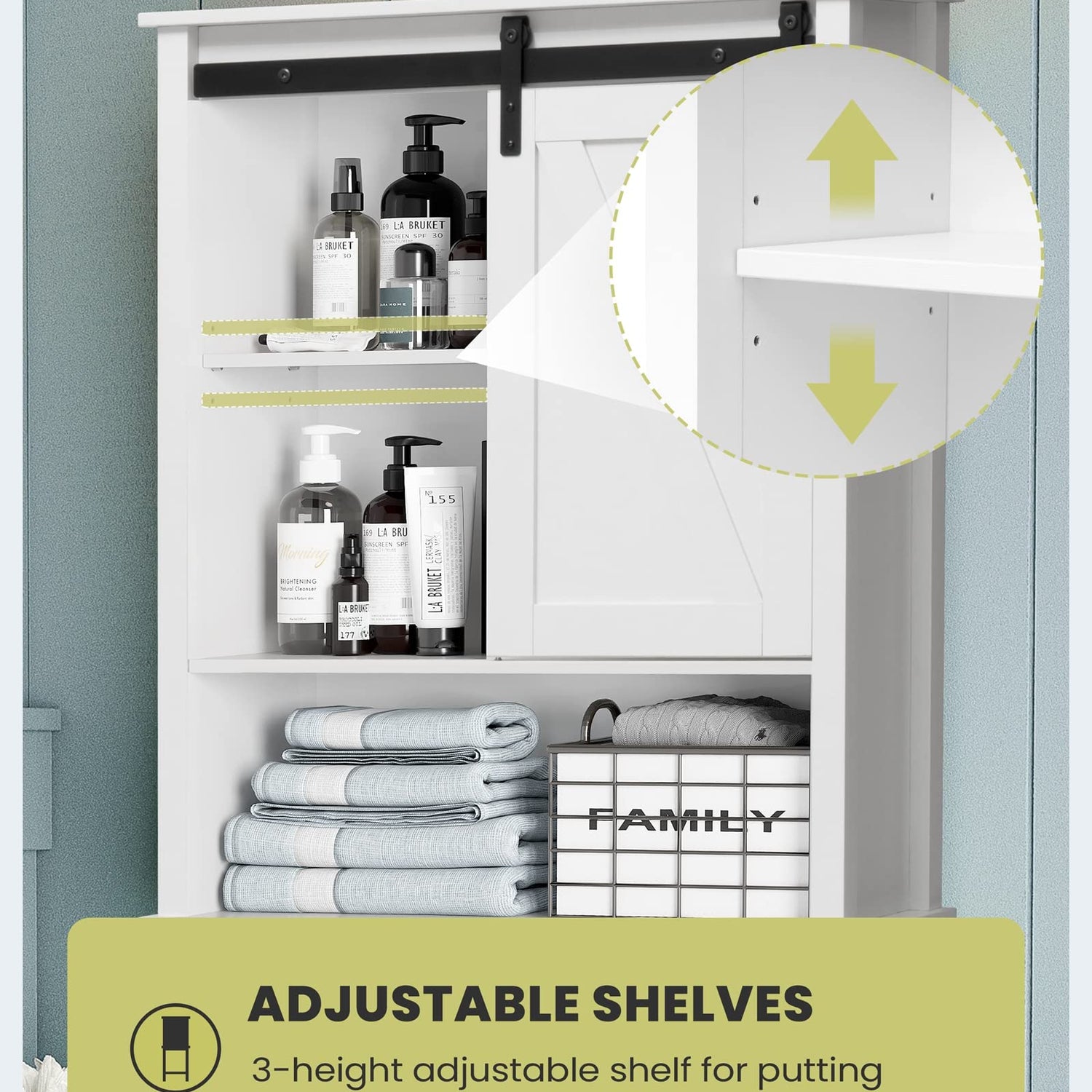 • 3-HEIGHT ADJUSTABLE SHELF: Move the shelves up or down to create more space for your large or small items storage.