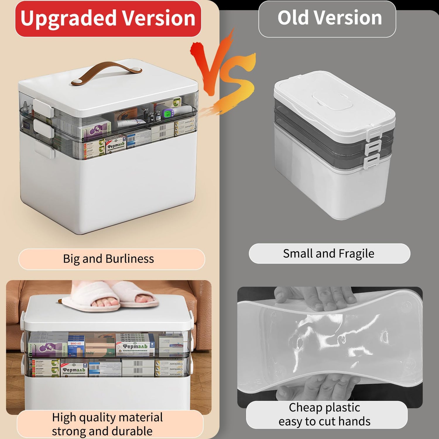 - [3-Layer Large Capacity Design]The 2025 New Medicine Storage Box features a spacious 3-layer design, perfect for organizing pills, ointments, medicine bottles, and more. With ample room, it helps you keep your medicines neat and easily accessible (Size:13.38*8.67*10inch).