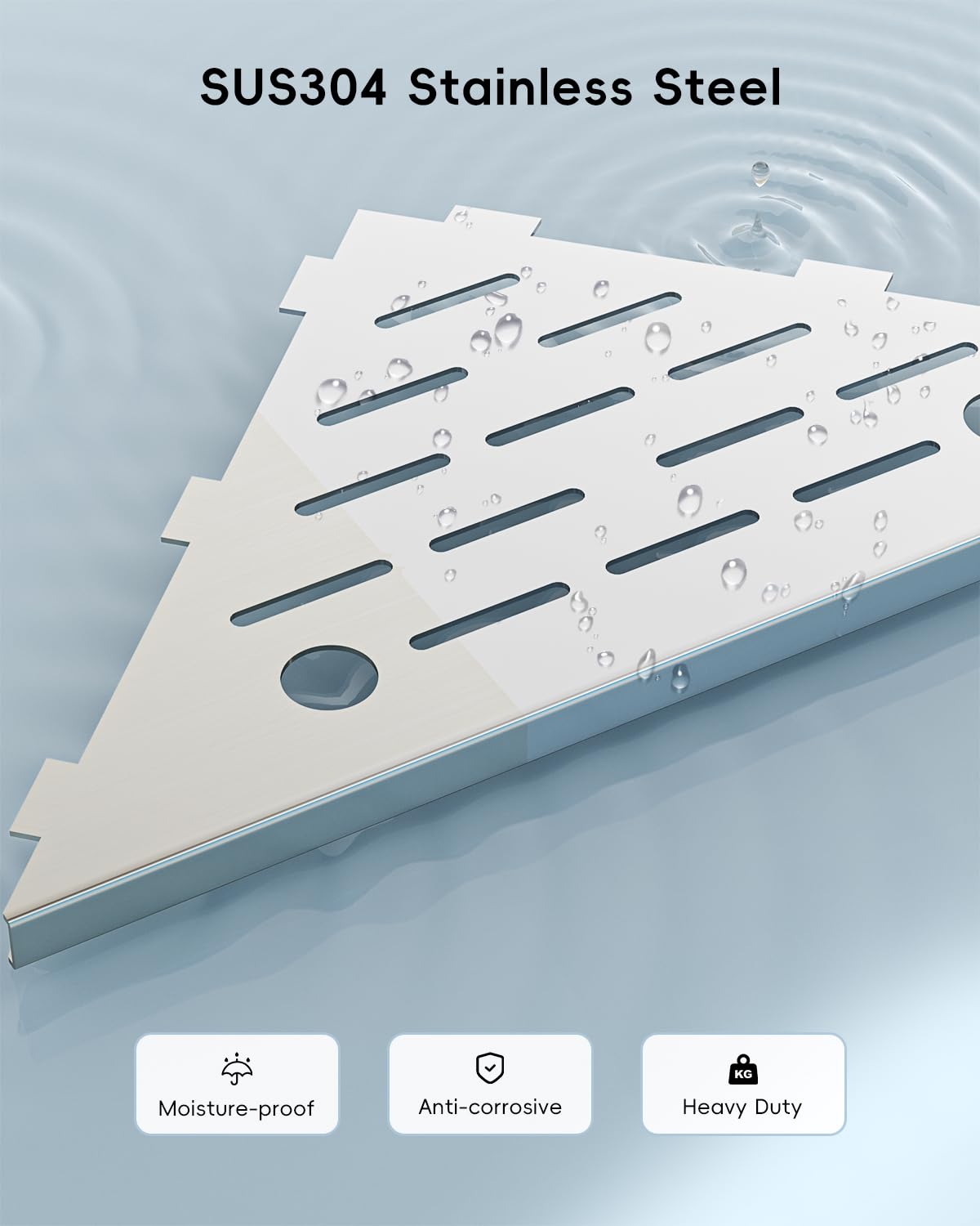 • Robust & Long - Lasting: Constructed from premium 304sus stainless steel, these triangular shelves can sturdily support heavy items like large shampoo bottles and body wash dispensers without any risk of deformation or breakage