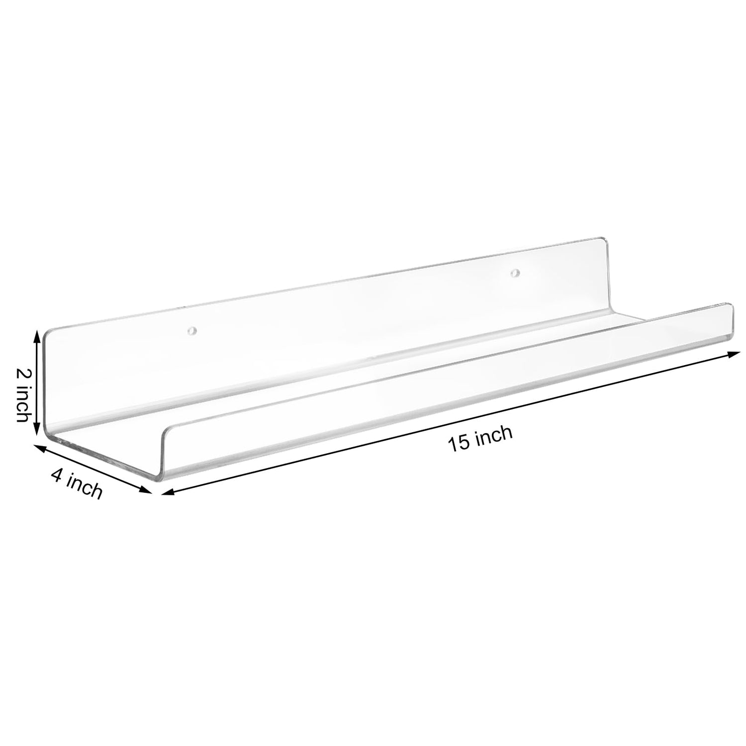 Dezzer 4 Pack Acrylic Shelves for Wall, 15" Clear Acrylic Floating Shelves for Bathroom Bedroom, Invisible Bookshelf Wall Ledge Storage Shelf Books Perfume Toys Action Figure Display Shelves
