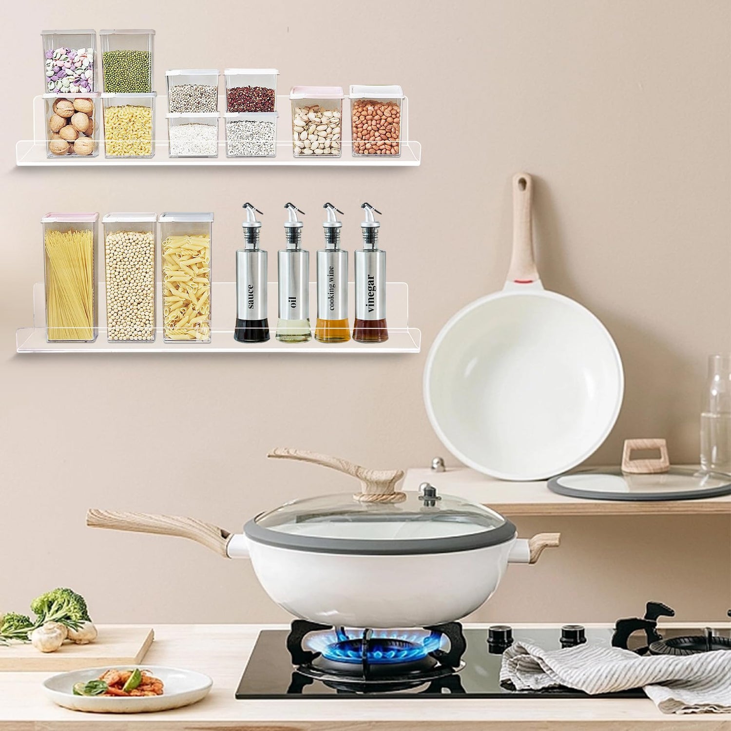 - ✅Super Space Saving: Minimalist floating shelves save much space on countertop or ground, help you to keep everything neatly and organized. A wonderful way to make the most use of limited space.