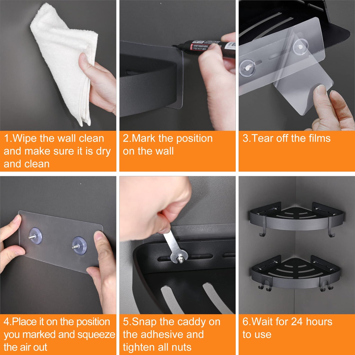 • 【No-Drilling Easy Installation】The bathroom caddy uses adhesive installation, won't damage your wall, and requires no tools.Can be installed in just few minutes.We also provide screws for you, in case you want to install them with screws