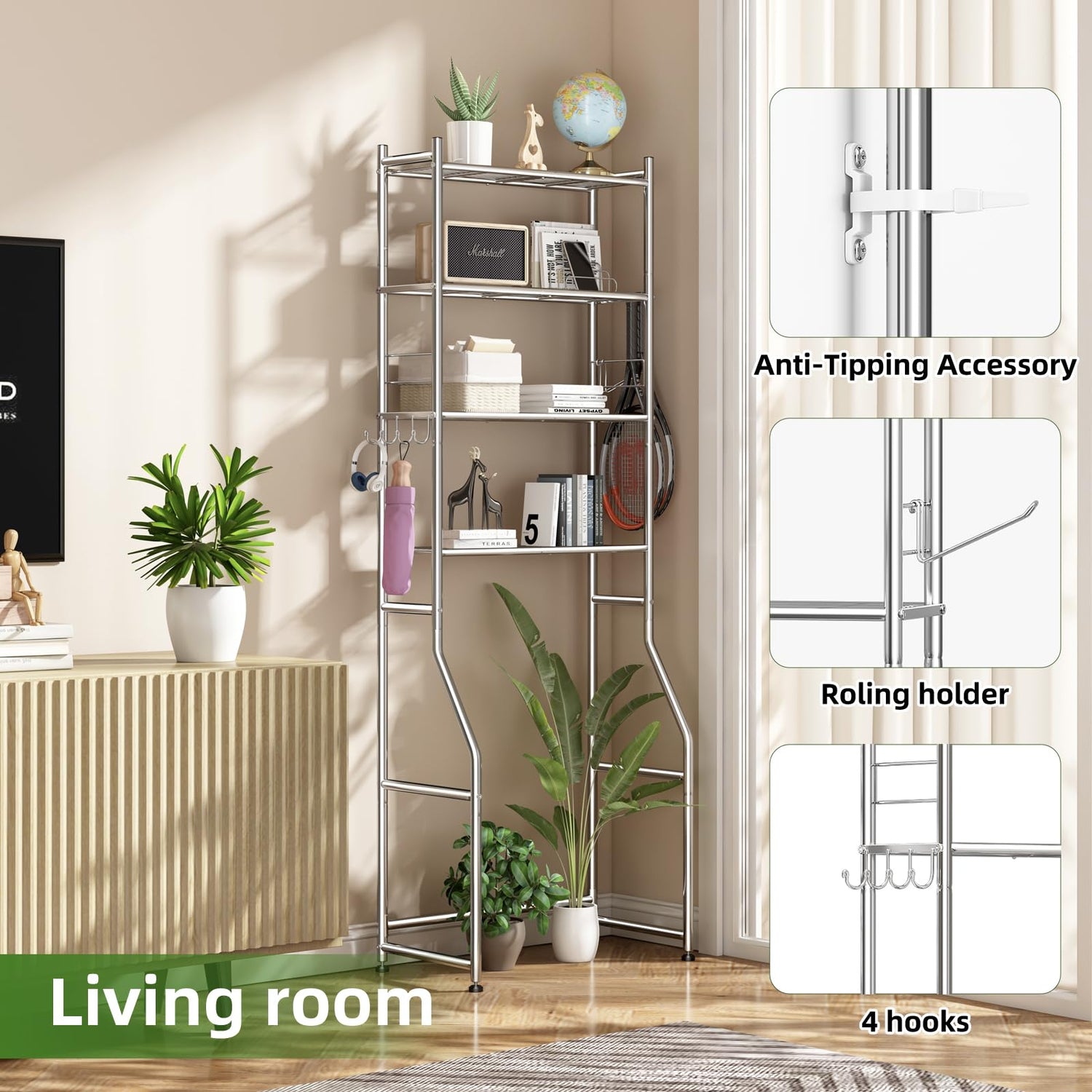 Ekisemio Over The Toilet Storage Shelf, 4-Tier Metal Over Toliet Bathroom Organizer Rack with Shelves, 70 Inch Tall, 4 Hooks and Paper Holder, Chrome
