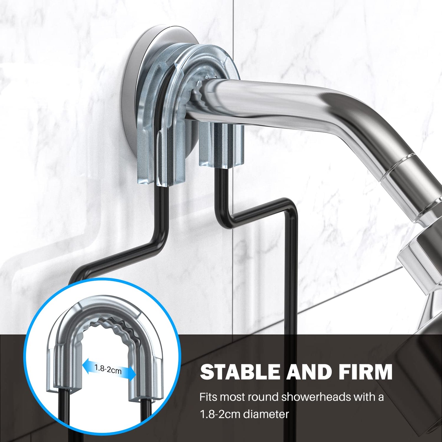 - Anti-Swing and Anti-Slip: A rubberized shower head grippe supports the caddy from above, and adhesive sticker hooks secure it from below. It won't lose balance when you take bottles in and out, ensuring a better bath experience