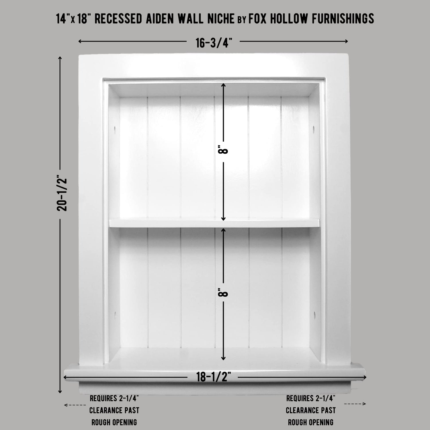 Fox Hollow Furnishings 14x18 Aiden Recessed Wall Niche Medicine Cabinet Replacement, in The Wall Bathroom Cabinet Insert Shelf/Shelves, Made in North America, Real Wood, NO MDF, Beadboard, White