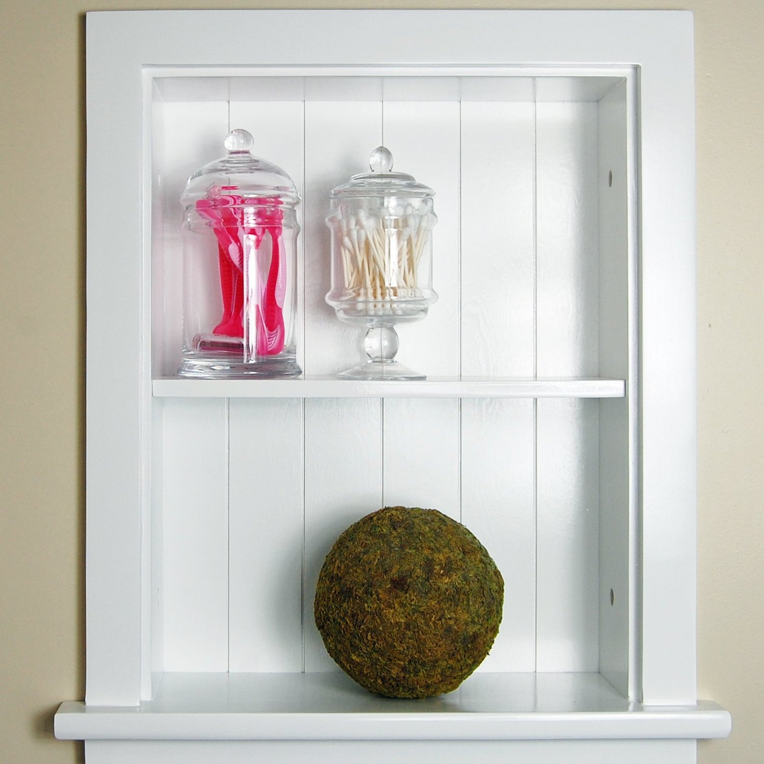 - RECESSED MEDICINE CABINET ALTERNATIVE - Display and store amenities in this laundry room organization and bathroom storage cabinet with durable wooden cubbies