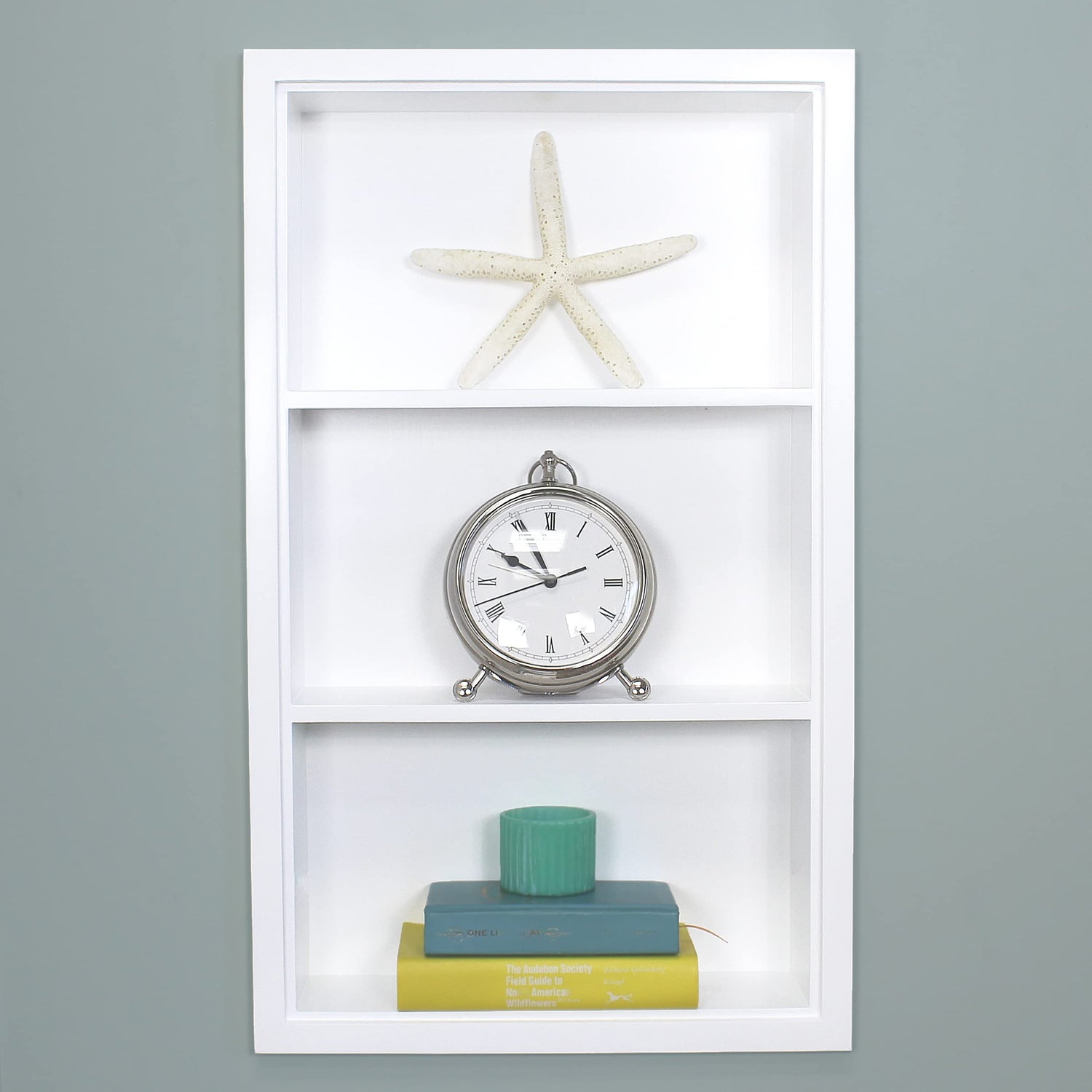 - MOUNTED WALL SHELF - Easy to install and comes fully assembled, the in-wall storage shelves have a sophisticated design and lacquer finish for moisture resistance