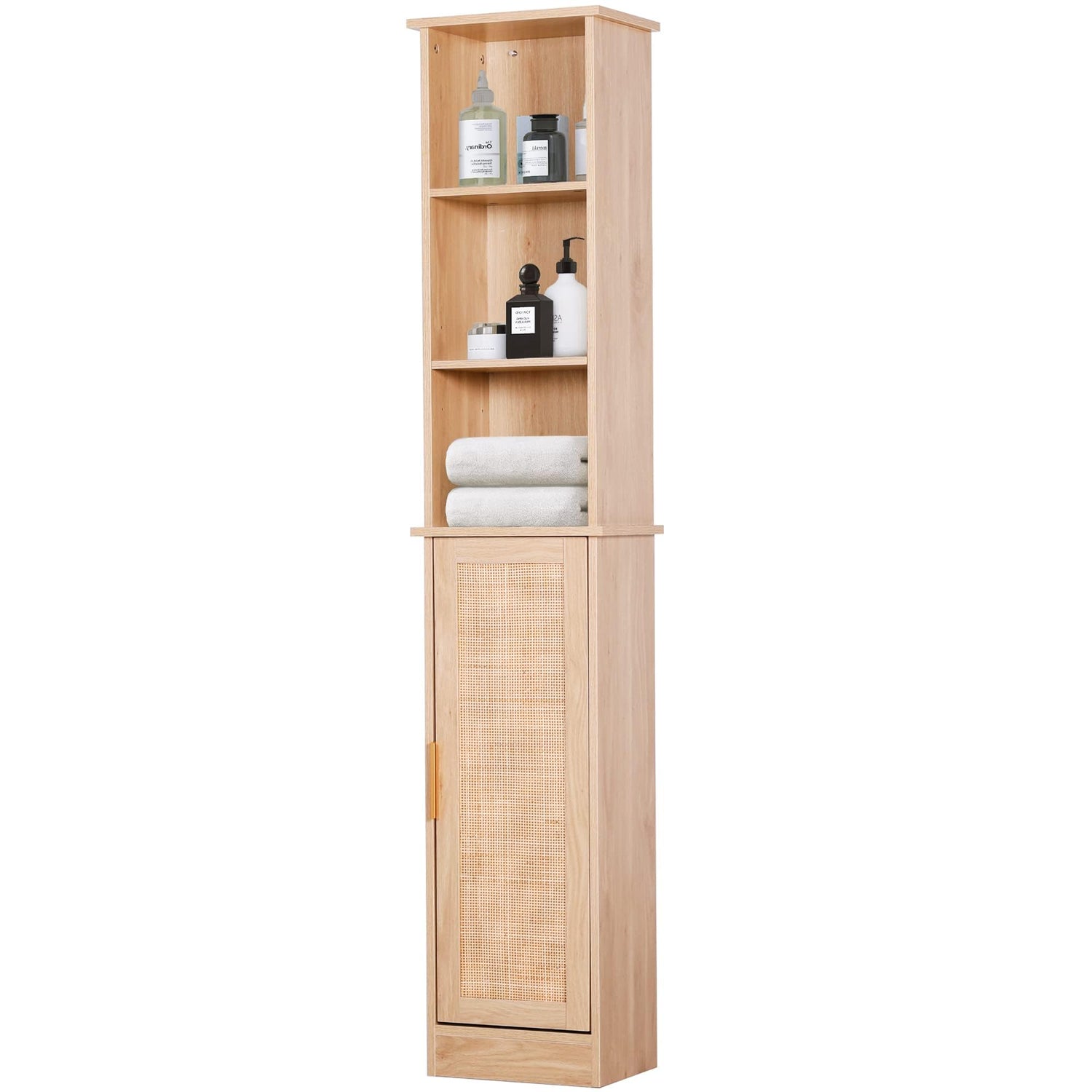 FUQARHY 65'' Tall Bathroom Storage Cabinet Organizer Wood Slim Floor Freestanding Cabinet Linen Tower with Door & 6 Shelves, w/Adjustable Shelves for Home, Bathroom, Kitchen (Natural)