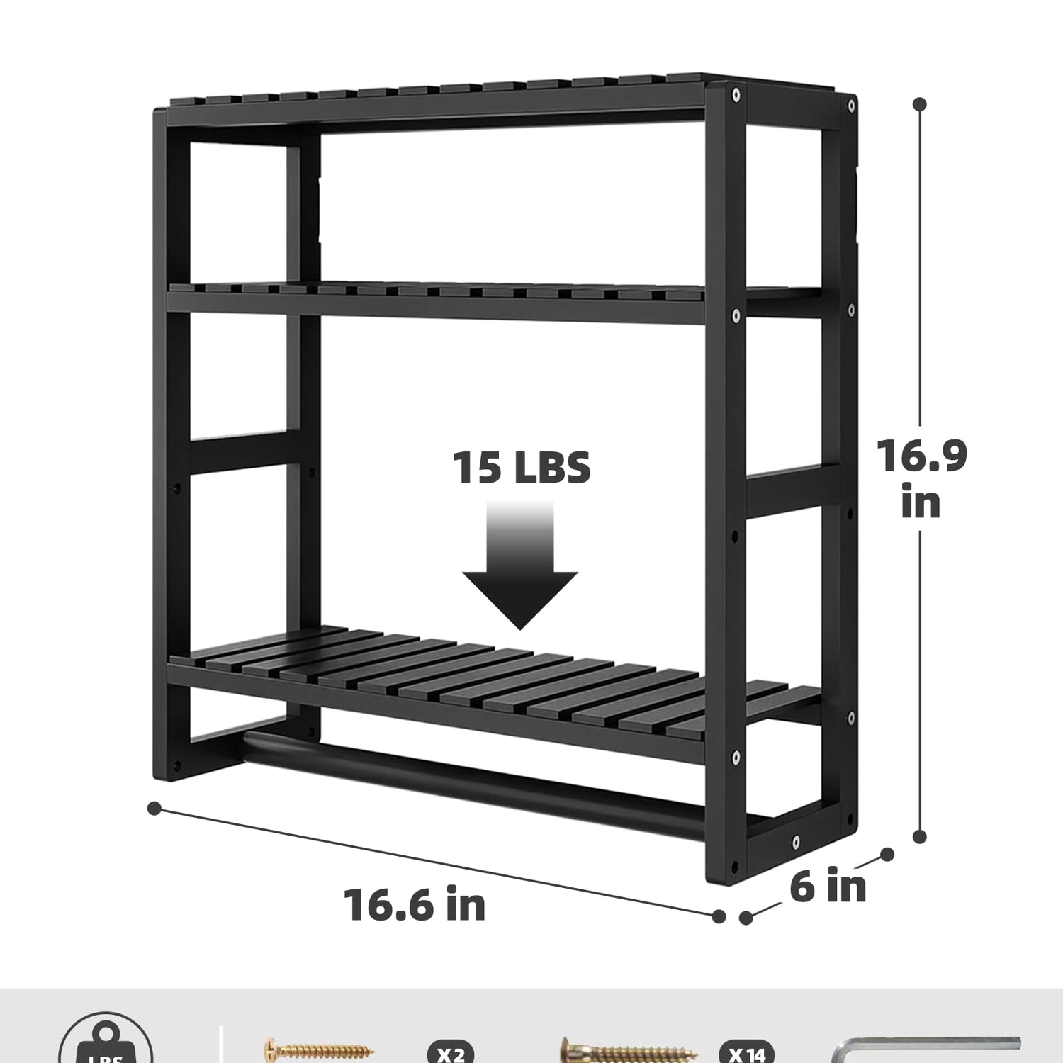 • Stylish Bamboo Accent Piece: Nice bamboo wall shelving for smaller, lightweight accessories.It holds extra hand towels and other assorted items you would like handy. Allows youto use it for storage but also as a decor piece. The shelf comes in different colors so will fit in with many decorsVery cute.It goes with semi-boho chic themed bathroom.