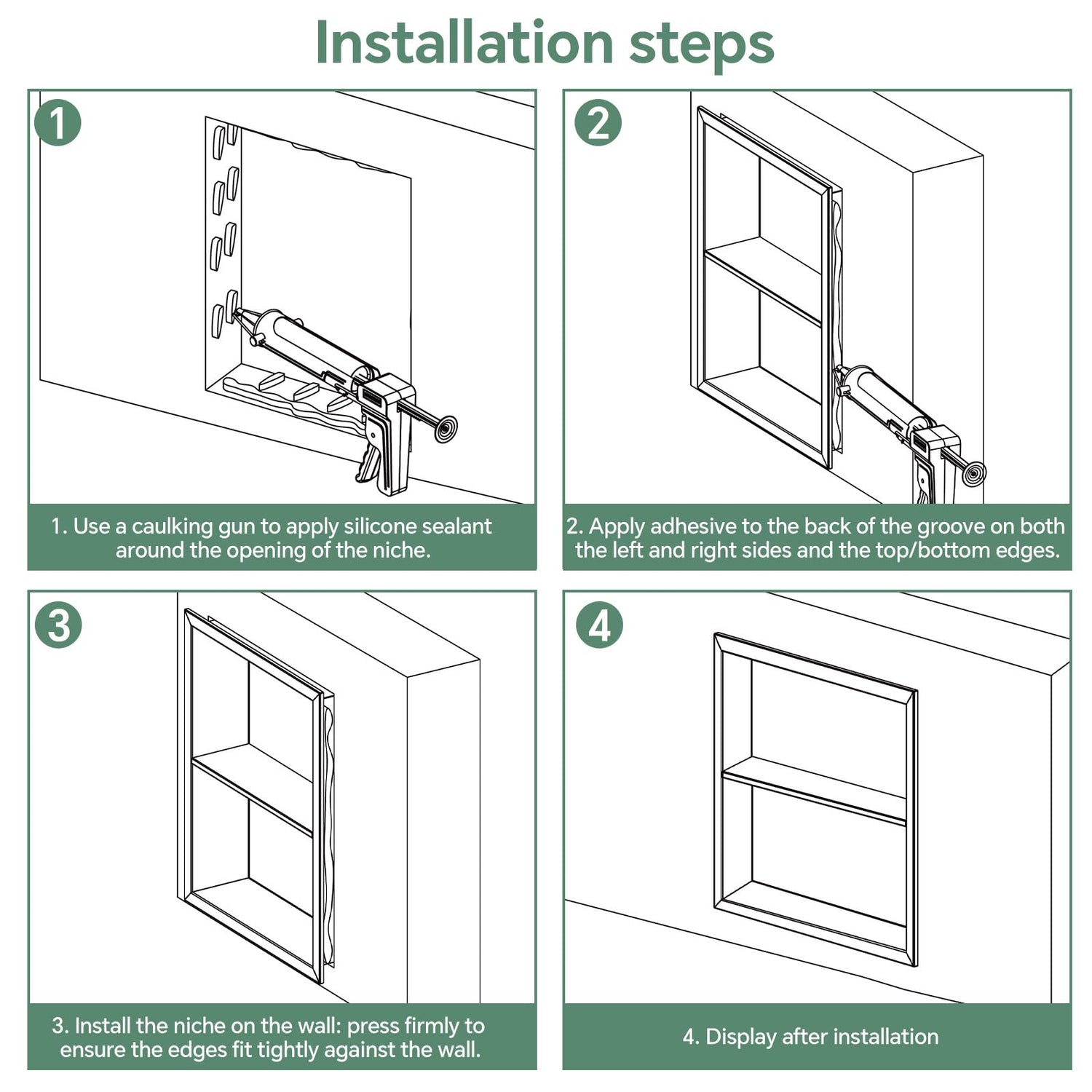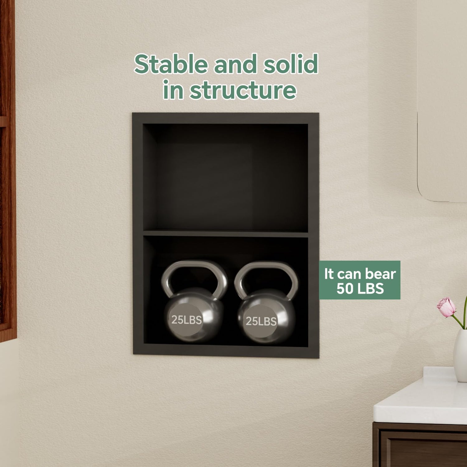 - Rust-Proof & Durable - Rust-Proof Shower Niche: This stainless steel niche resists rust, peeling, and warping in humid areas. Its durable construction maintains cleanliness with a low-maintenance black finish that’s easy to clean.