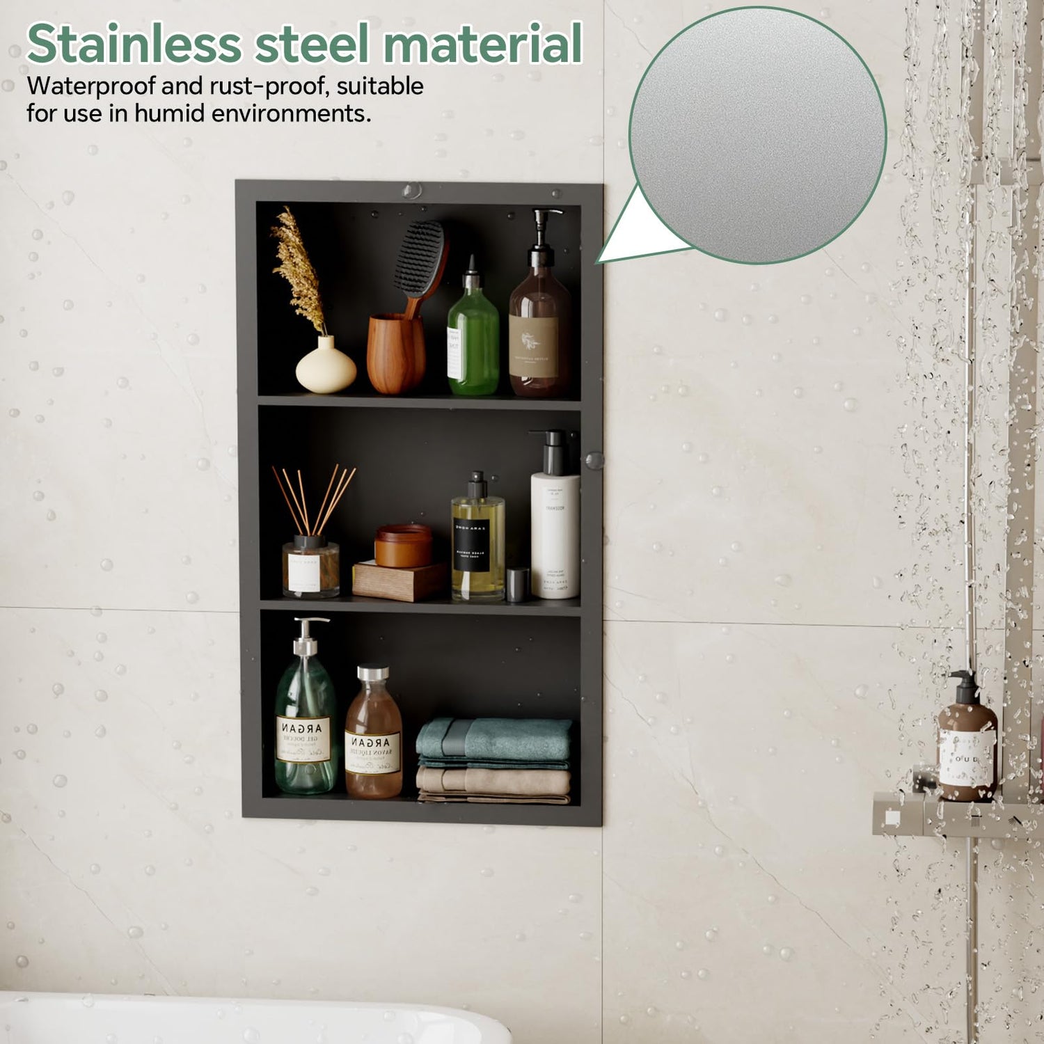 Giklux Stainless Steel Recessed Medicine Cabinet 14''*24'', Rust-Proof Metal Wall Niche, in Wall Shower Niche Shelf Insert Replacement, Recessed Medicine Cabinets for Drywall, Bathroom Storage, Black