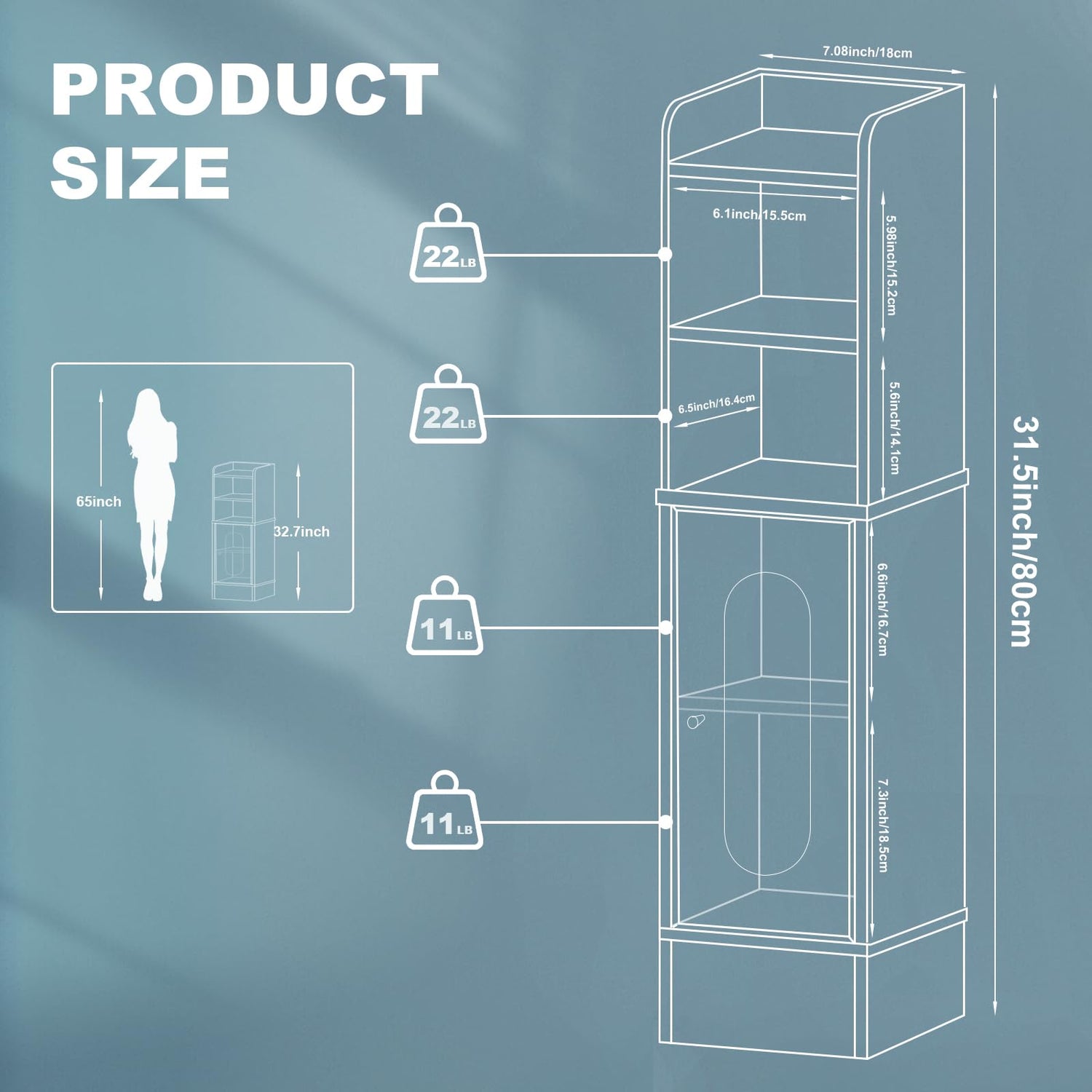 • โœ…๐—ฆ๐—ฝ๐—ฎ๐—ฐ๐—ฒ ๐—ฆ๐—ฎ๐˜ƒ๐—ถ๐—ป๐—ด ๐——๐—ฒ๐˜€๐—ถ๐—ด๐—ป ๐—ณ๐—ผ๐—ฟ ๐—ฆ๐—บ๐—ฎ๐—น๐—น ๐—ฆ๐—ฝ๐—ฎ๐—ฐ๐—ฒ๐˜€: The size of this narrow bathroom storage cabinet is only 11.3 inches (depth) x 11.8 inches (width) x 66.9 inches (height). It is tall and narrow and can be regarded as a storage expert. It can provide sufficient space for all your bathroom items while taking up very little space. It is very suitable for small bathrooms or those hard-to-use corners in the home. As a bathroom cabinet freestanding, it offers great flexibility. It can also serve as a towel cabinet for bathroom or a toilet paper cabinet.