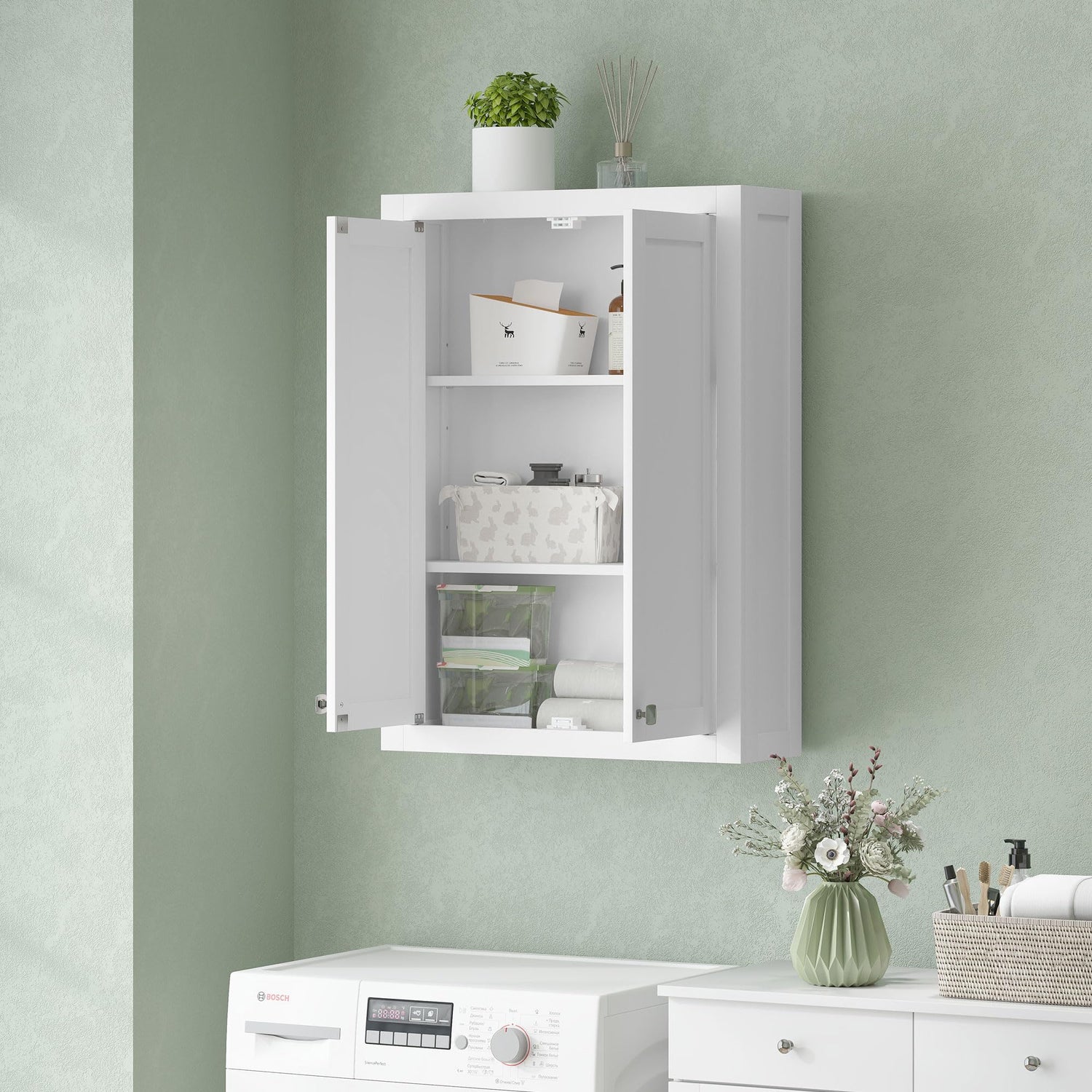 - Modern Style: Finished in crisp white with refined silver handles, this wall mounted cabinet brings a fresh, modern look that suits any bathroom decor