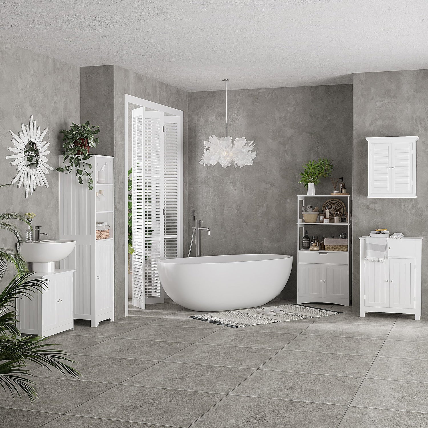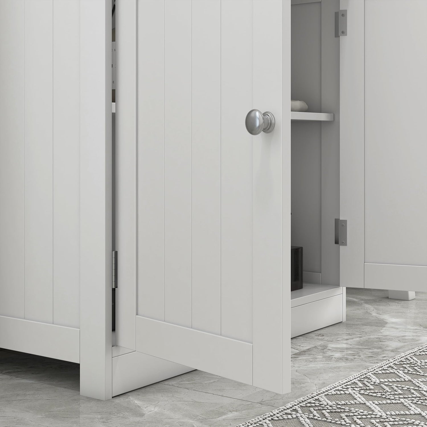• Fit Whatever You Need: There is an adjustable shelf inside the storage cabinet which can be moved up and down to meet your different storage needs. The double door design effectively prevents your items from getting wet.