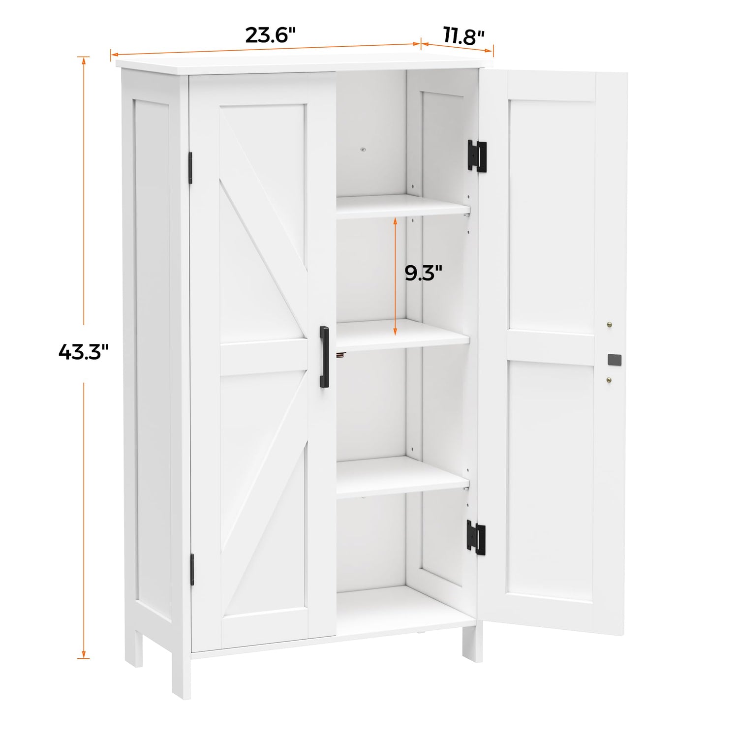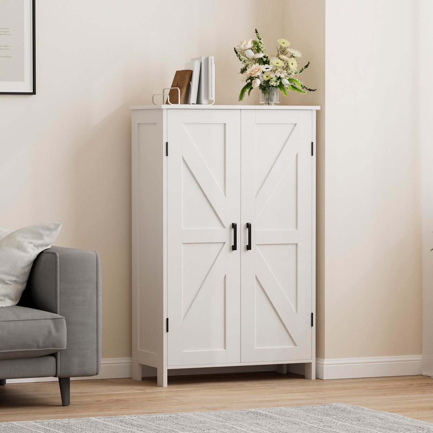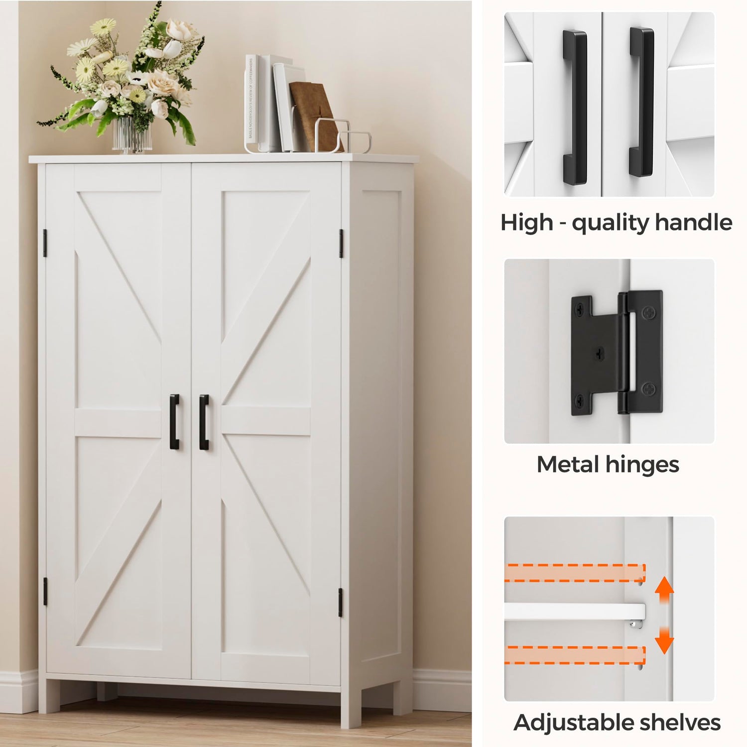 Homleke Farmhouse Bathroom Cabinet with Adjustable Shelves, Free-Standing Storage Cabinet with Barn Doors, for Kitchen, Living Room, Dining Room, Entryway, White